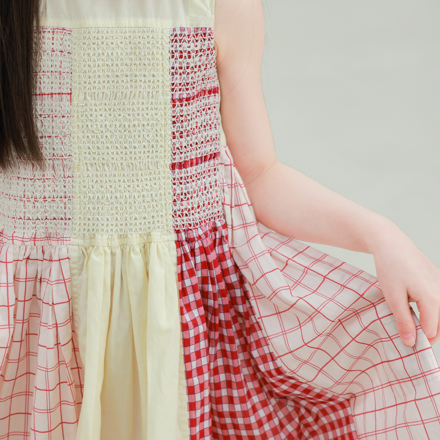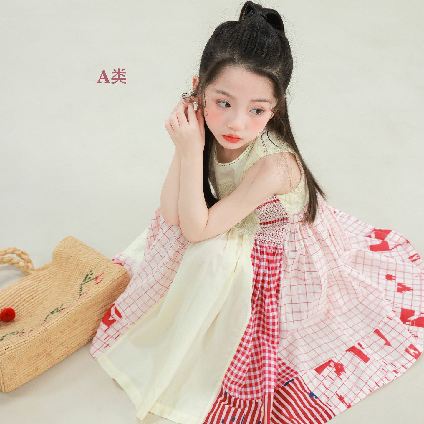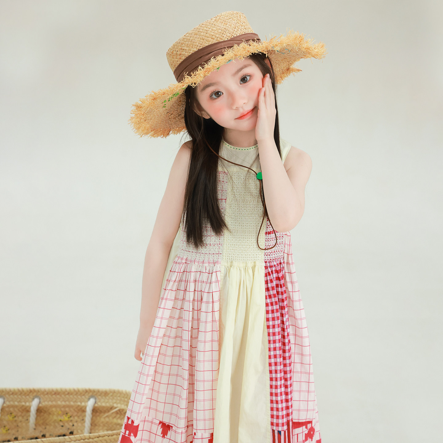 大耳象女童拼接格子打揽连衣裙2026夏季新款宝儿小众无袖薄裙子