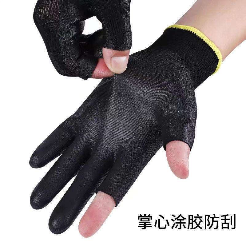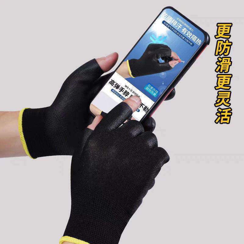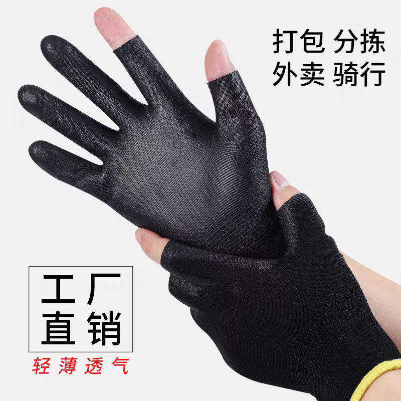 薄款打包手套女士专用快递员劳保耐磨工作钓鱼采茶干活露二指防滑