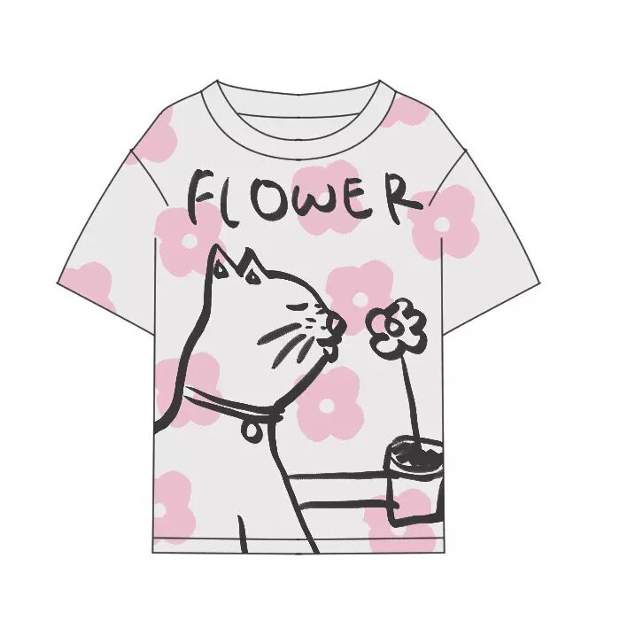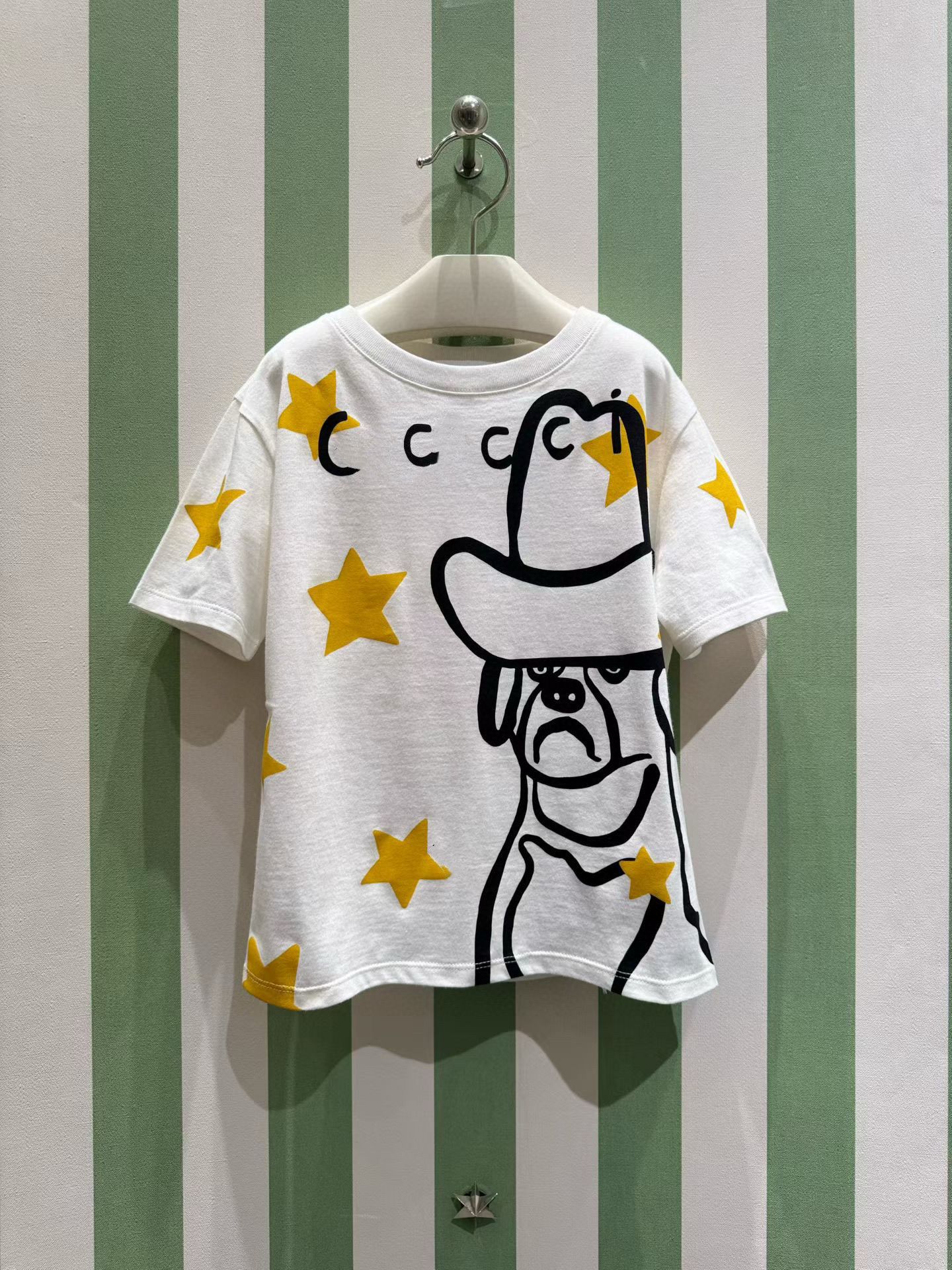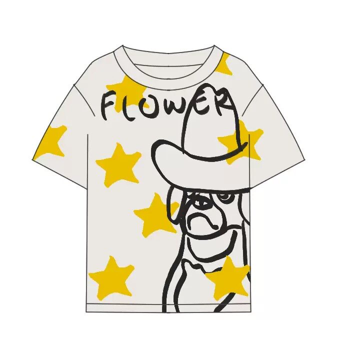 26年新款星星花朵猫咪狗男女童纯棉白色印花彩色圆领短袖T恤上衣