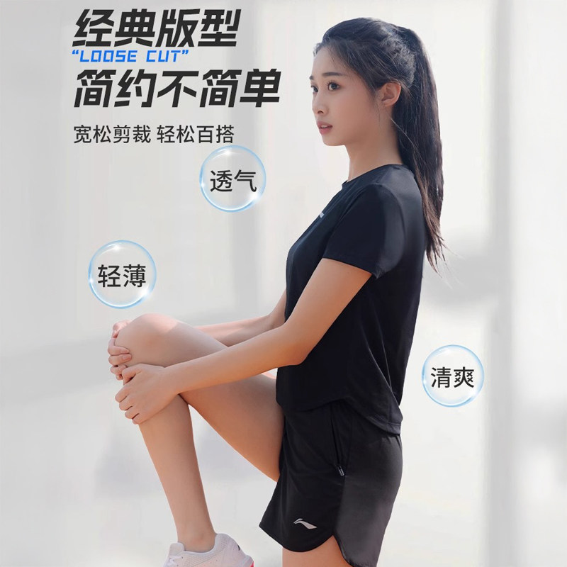 311线报网描述:李宁t恤女士速干短袖运动跑步冰丝透气宽松