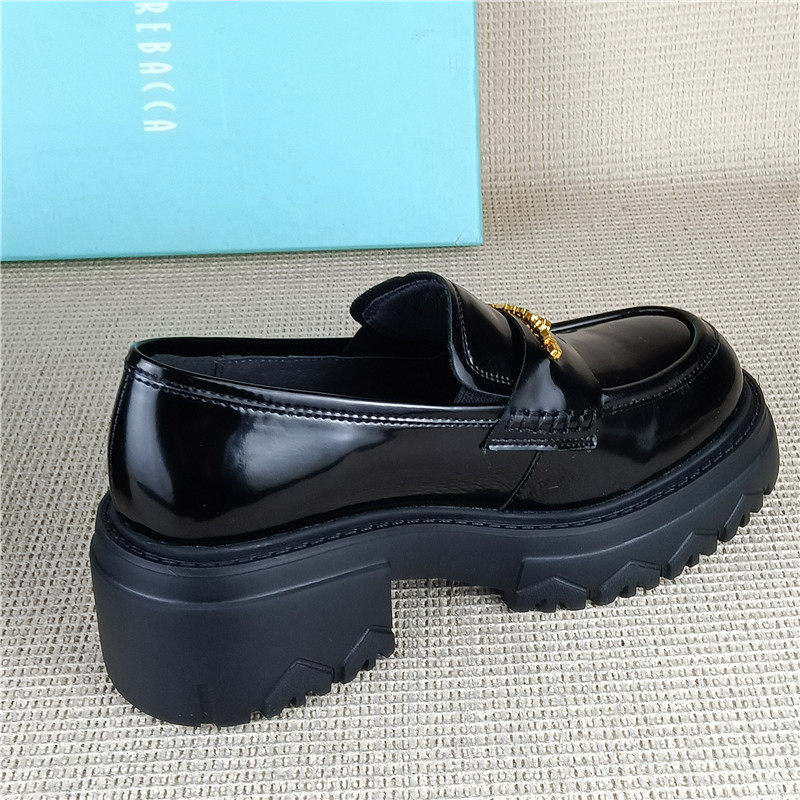瑞贝卡女鞋正品撤柜断码处理真皮乐福鞋厚底增高开边珠牛皮单鞋潮