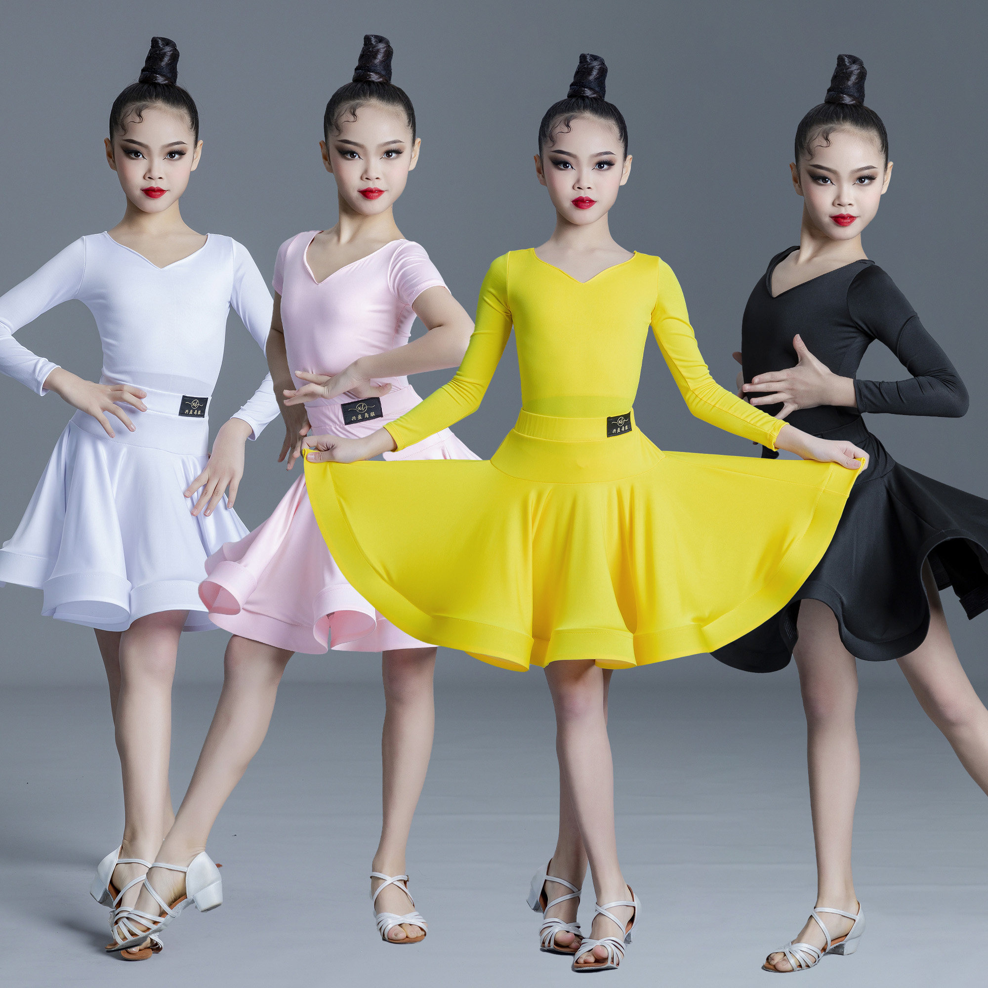 春夏季儿童拉丁舞蹈服练功服少儿专业标准比赛表演服女长袖拉丁裙