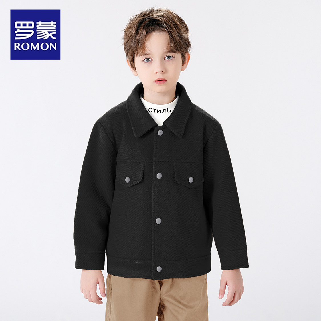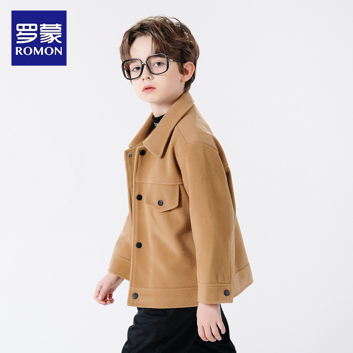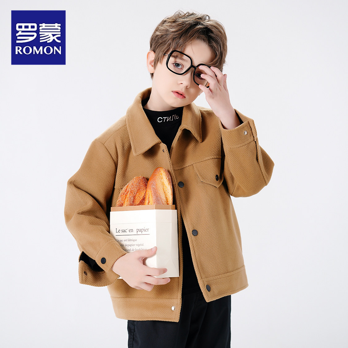 罗蒙童装男童羊毛呢子外套2026秋冬新款儿童休闲宽松短款夹克韩版