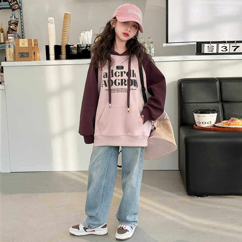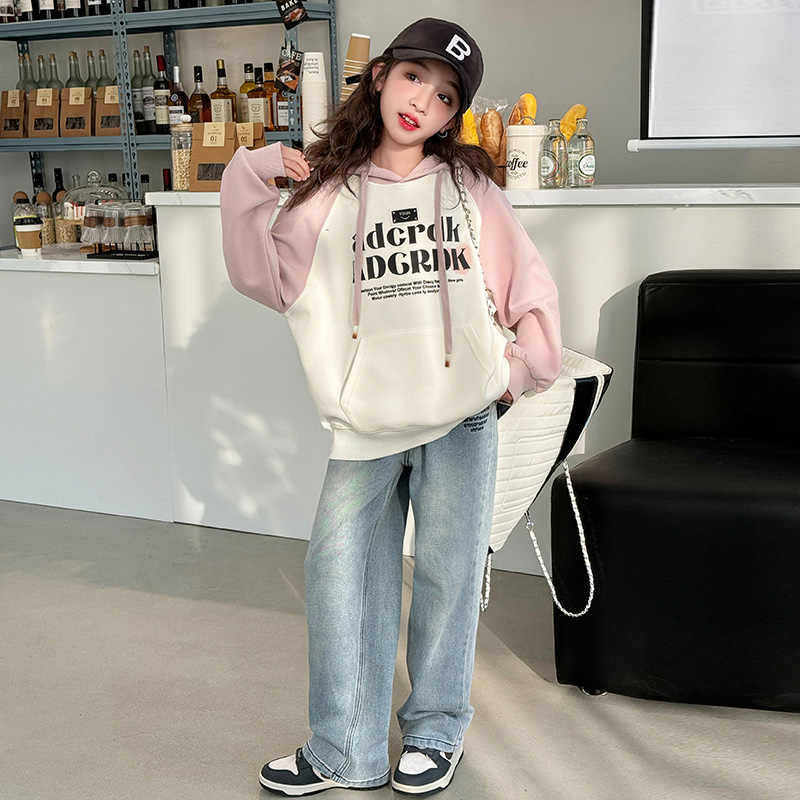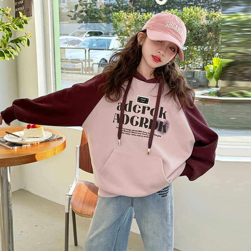 女童卫衣春秋2026新款儿童春装洋气女孩中大童宽松连帽上衣初中生