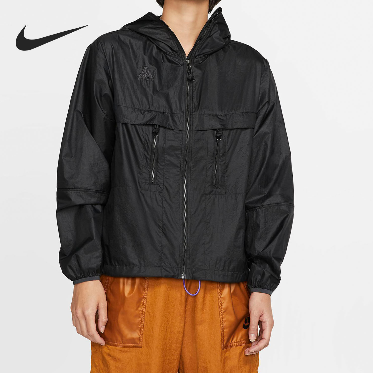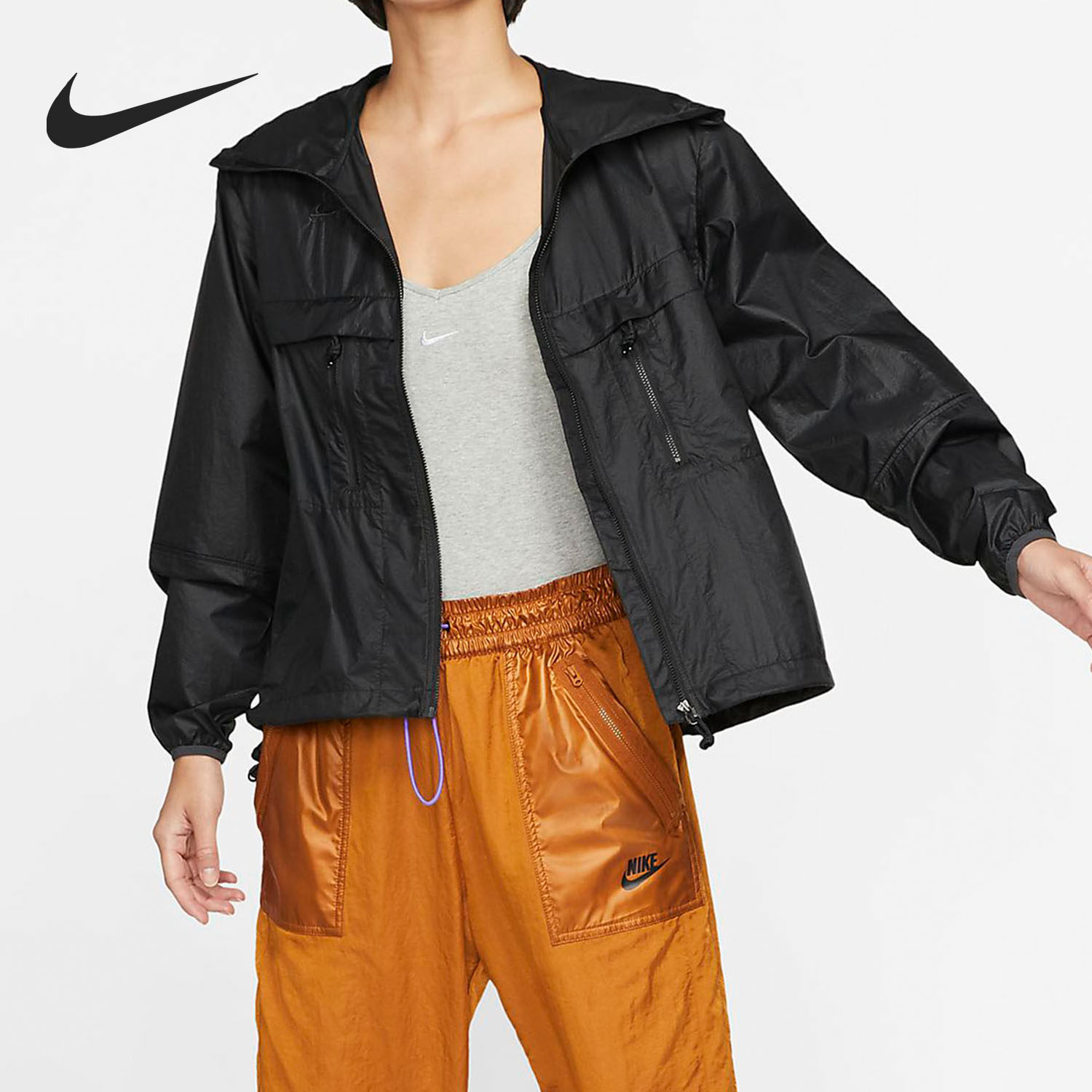 Nike/耐克正品女子运动机能拉链连帽黑色冲锋衣夹克外套CD7641