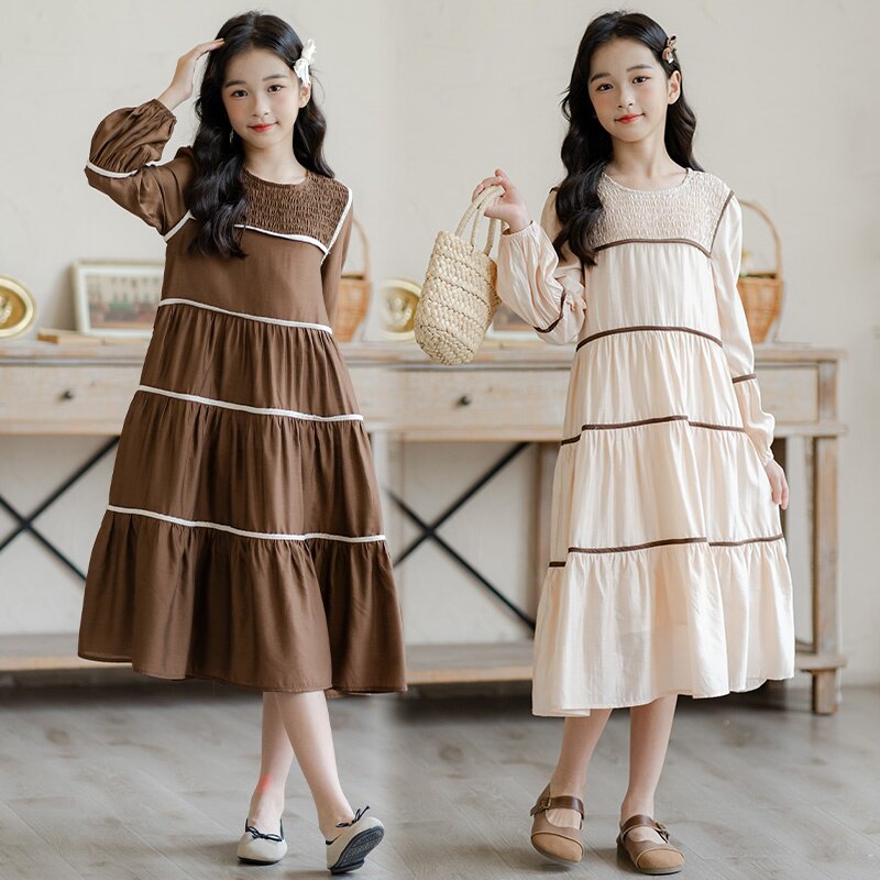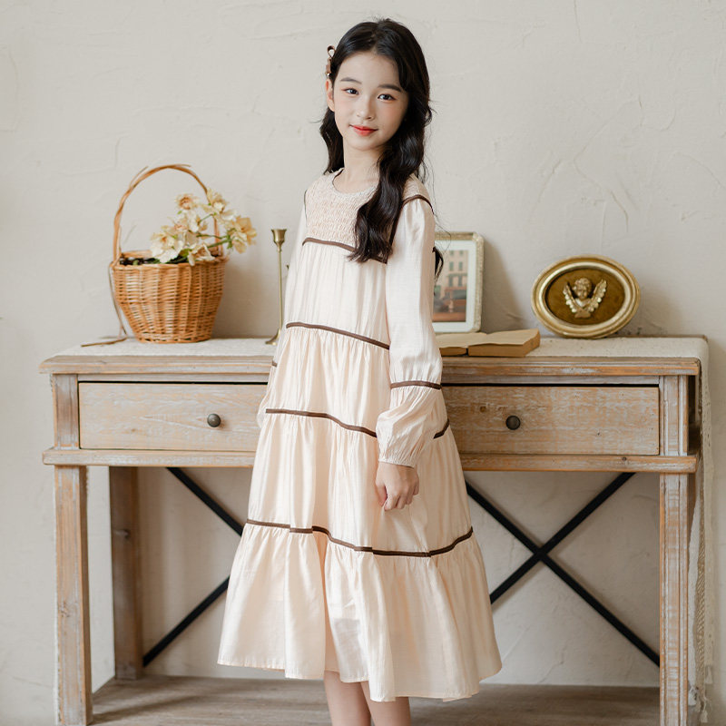 女童长袖连衣裙2026新款亲子装儿童条纹公主裙春季时尚洋气中大童