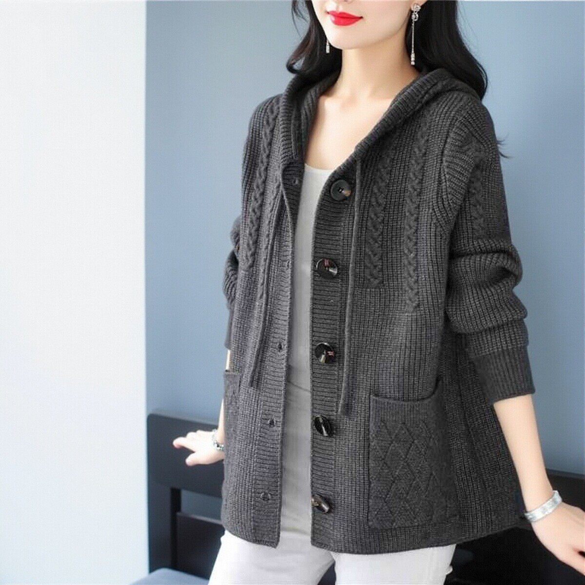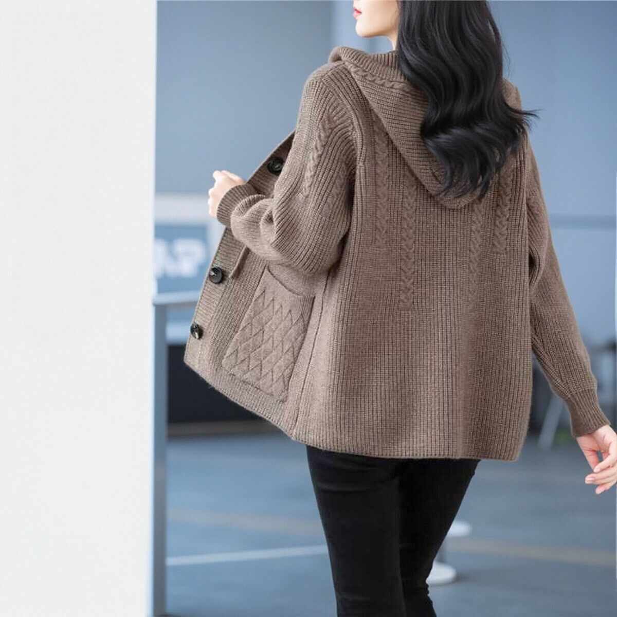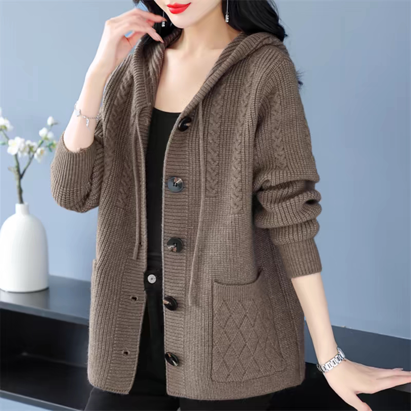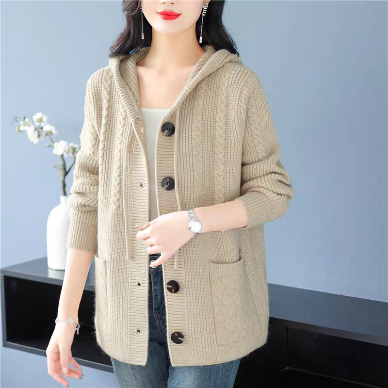 2024秋冬新款连帽针织开衫女宽松加大码胖mm加厚毛衣外套外搭上衣