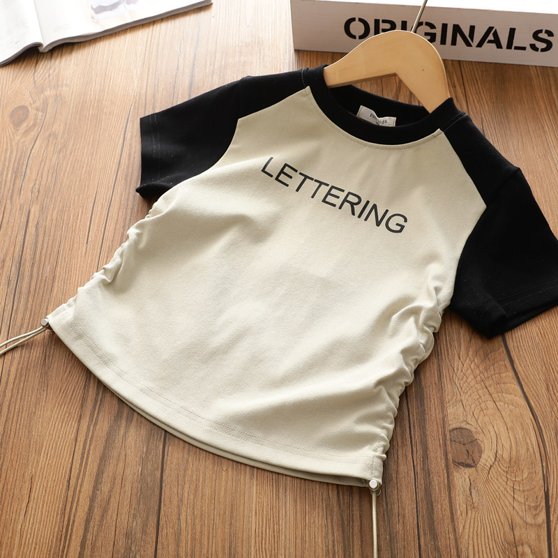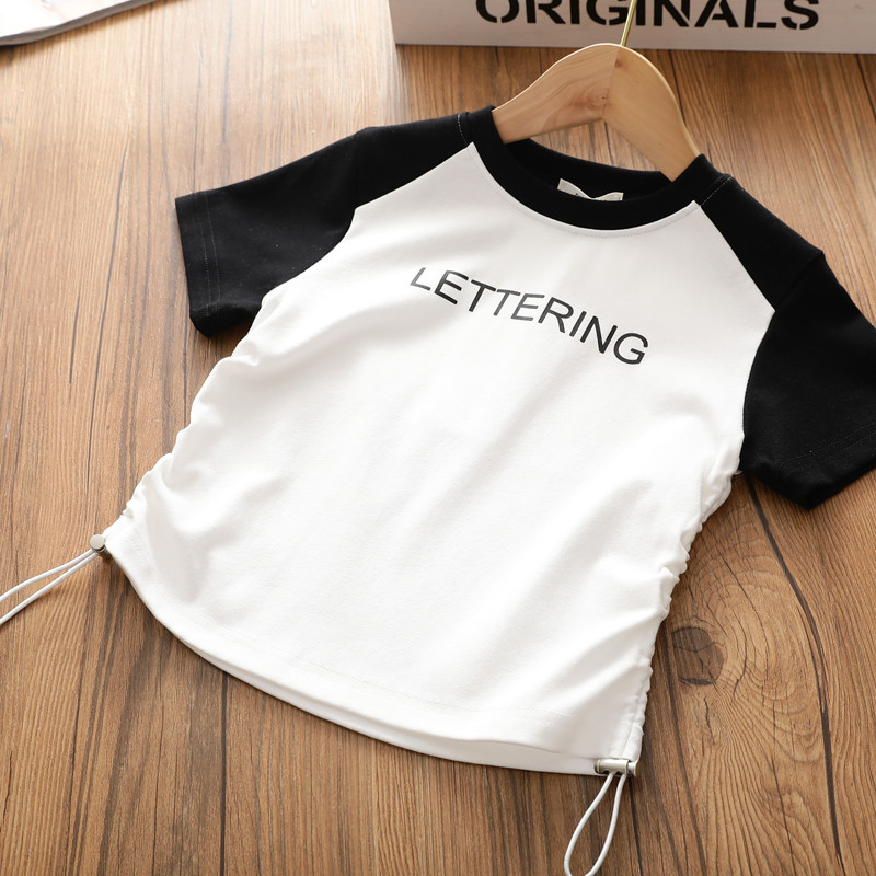 女童插肩袖纯棉短袖T恤中大儿童洋气短款收腰上衣2026夏季新款潮