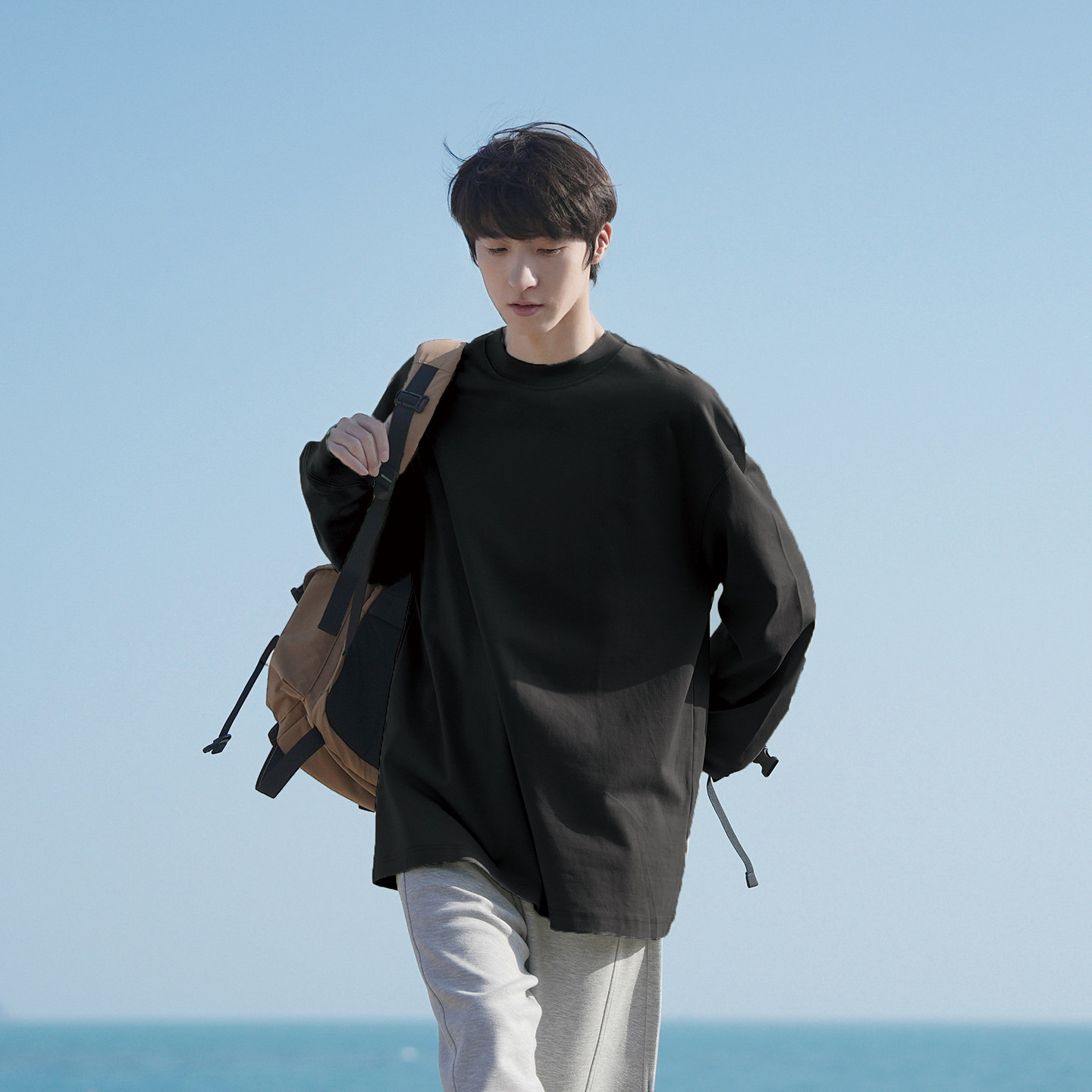 GOOZI MADE 白色长袖t恤男女春季卫衣纯色男生速干内搭打底衫男款