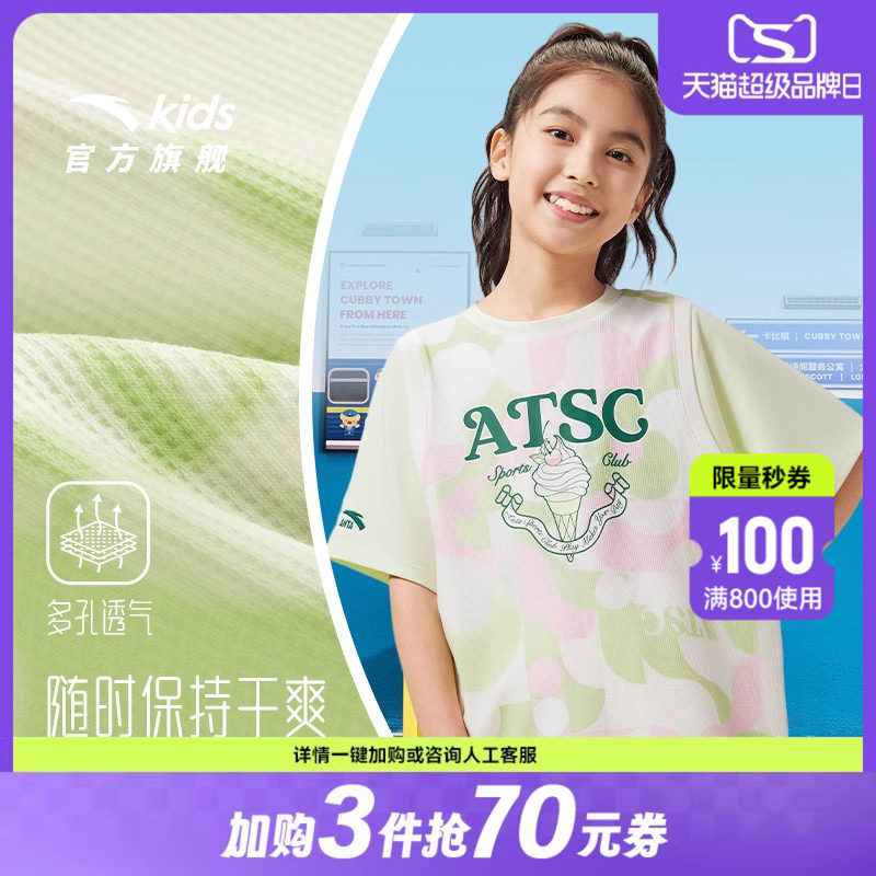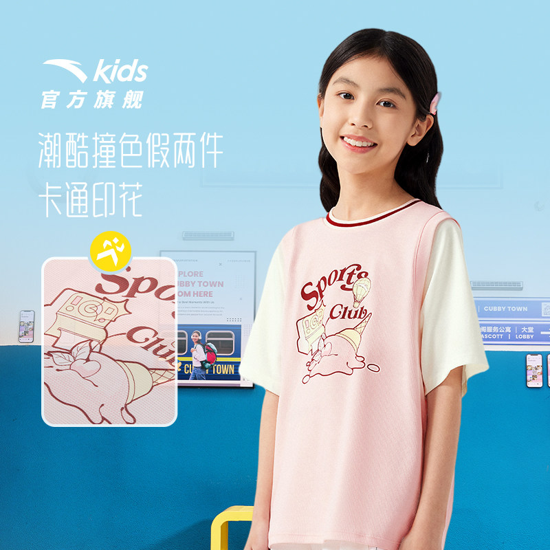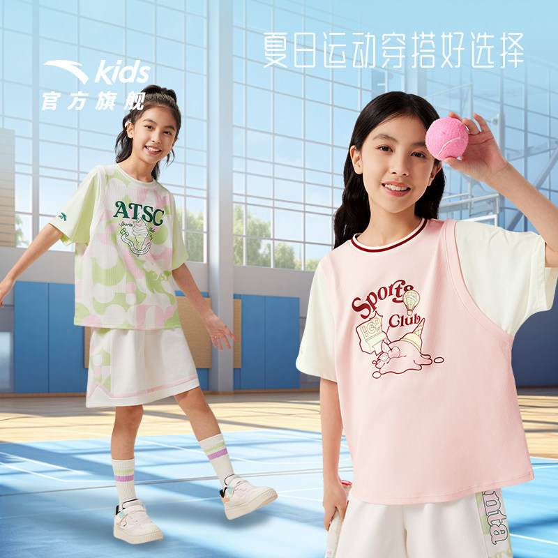 商场同款|安踏儿童短袖T恤女童篮球服2026夏季新款宽松运动上衣潮