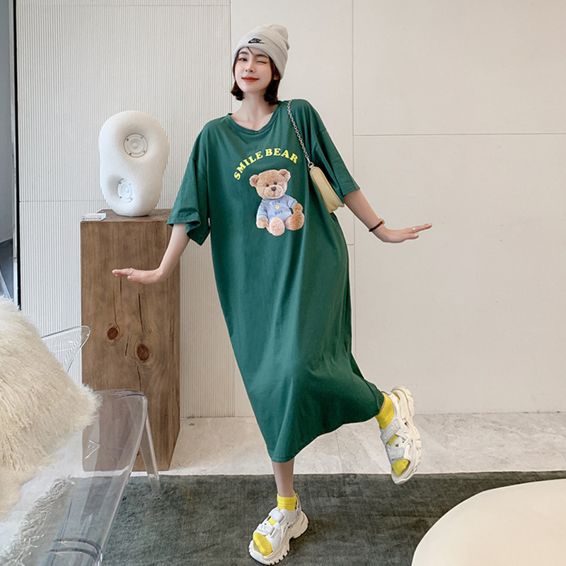 加肥加大码女装胖mm纯棉连衣裙宽松t恤裙女短袖显瘦中长款t长裙子