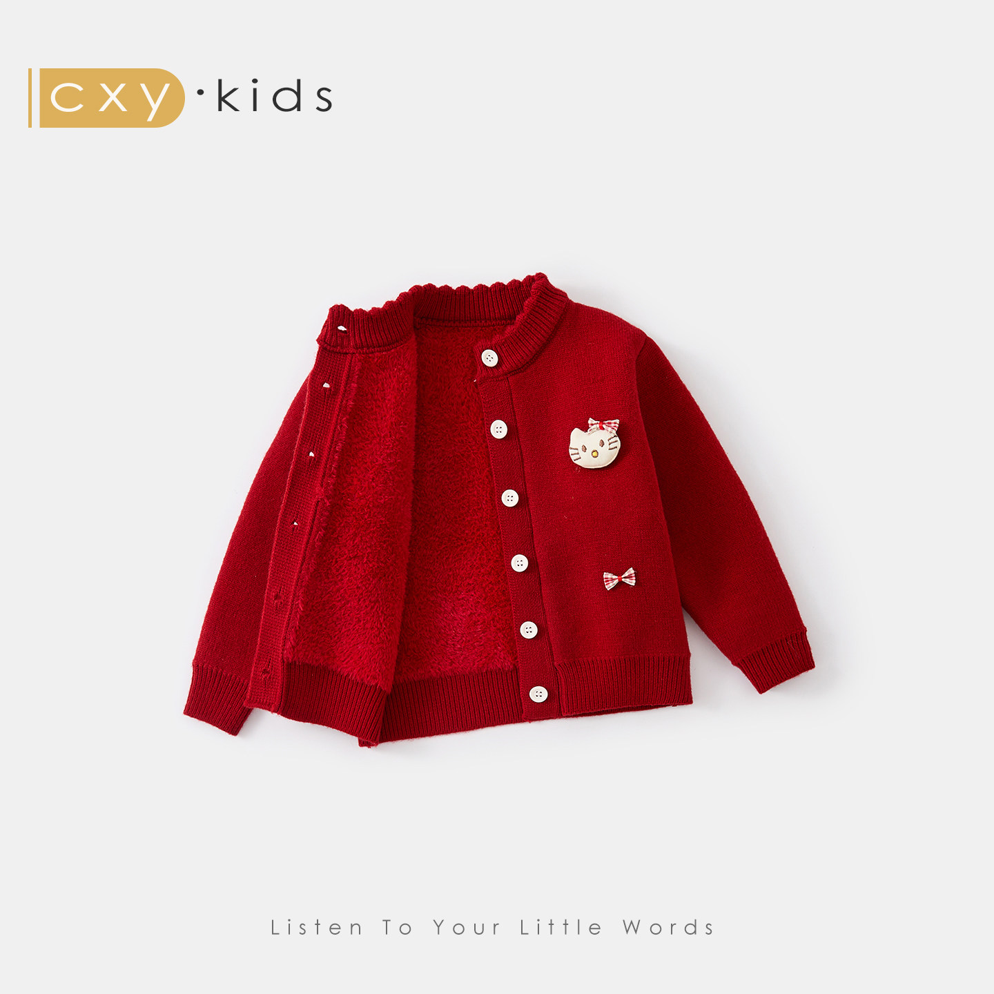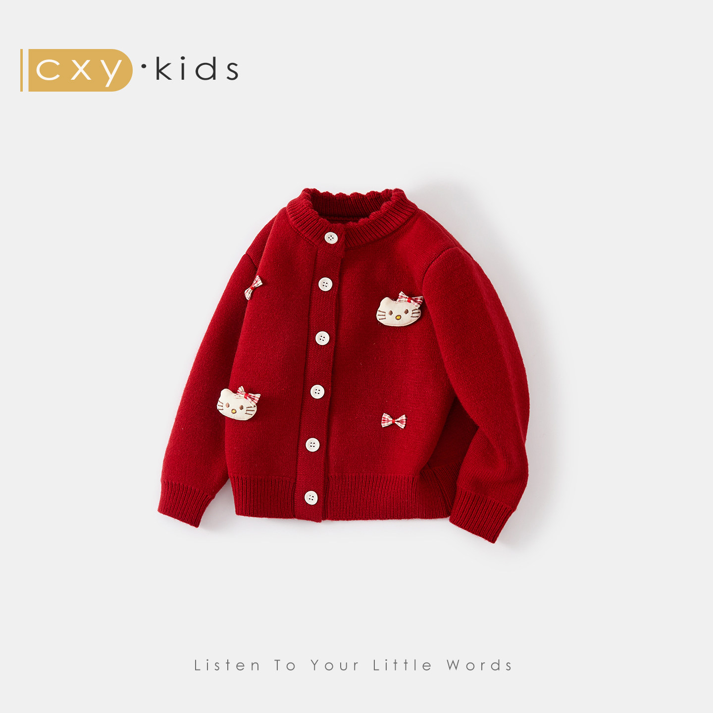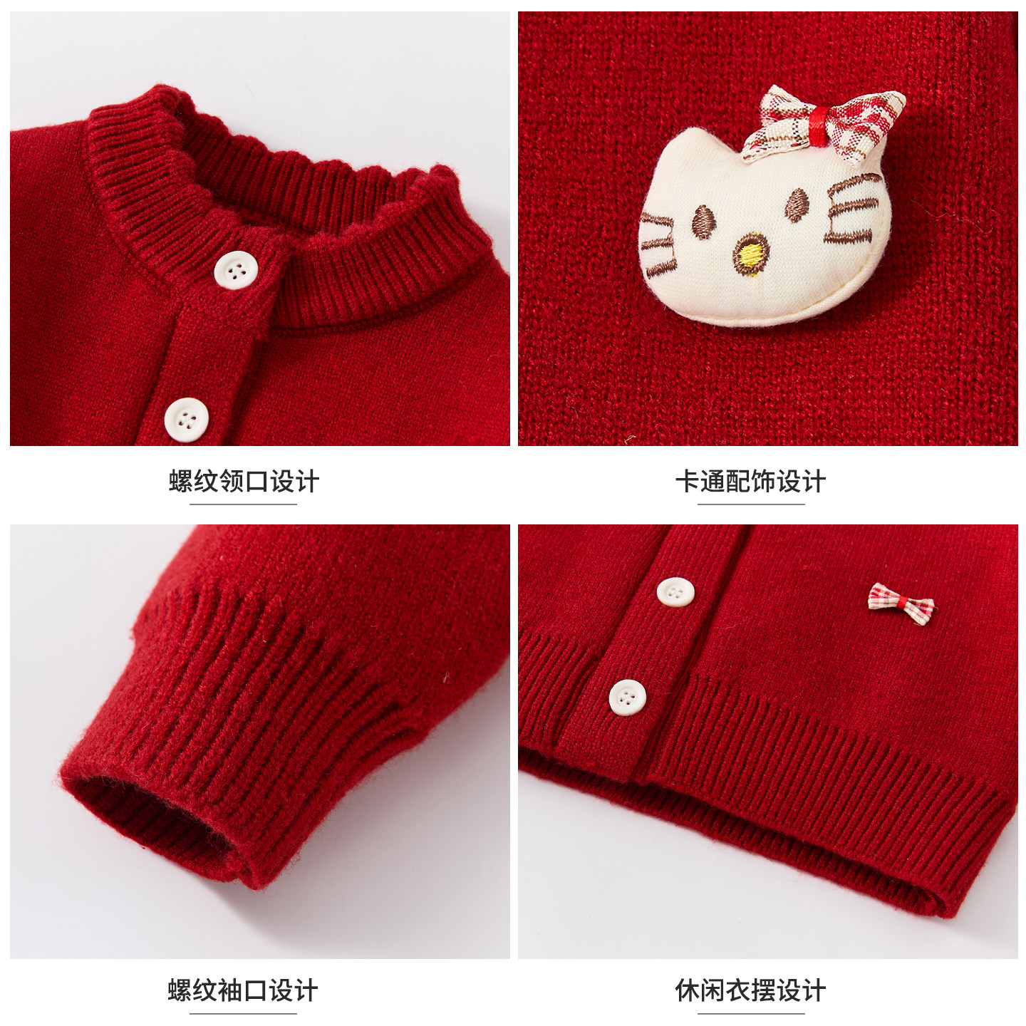 女童毛衣红色2025新款女宝冬季内搭超好看上衣儿童开衫加厚针织衫