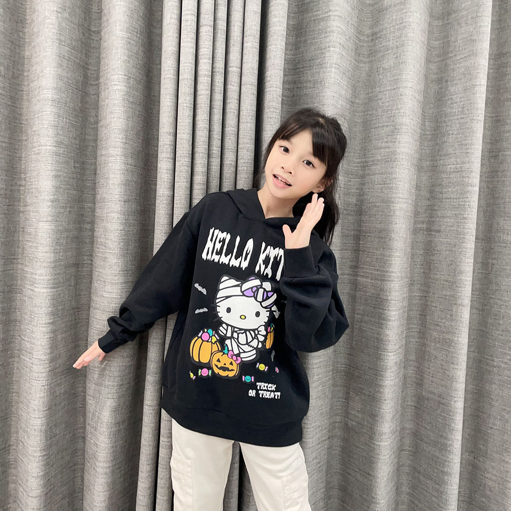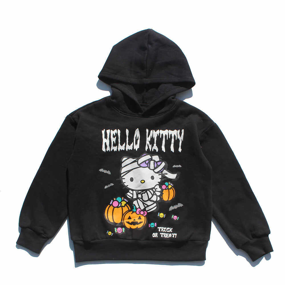 包邮F21牌黑暗系酷飒风女装hellokitty加绒卫衣女童黑色连帽卫衣