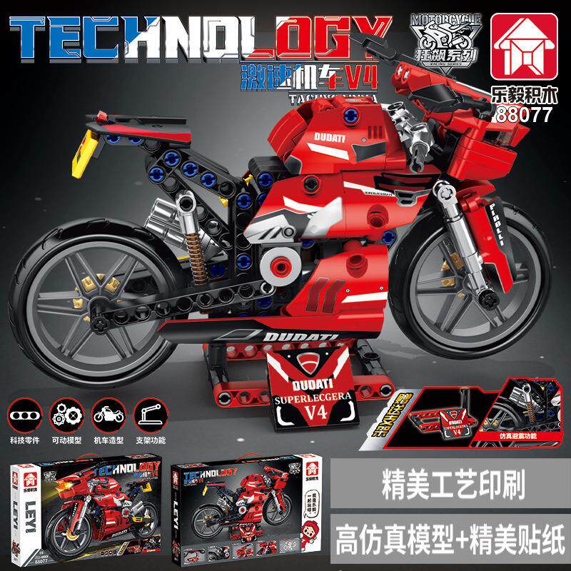 杜卡迪V427782R摩托车机M0装10RR机械组玩具拼积木构