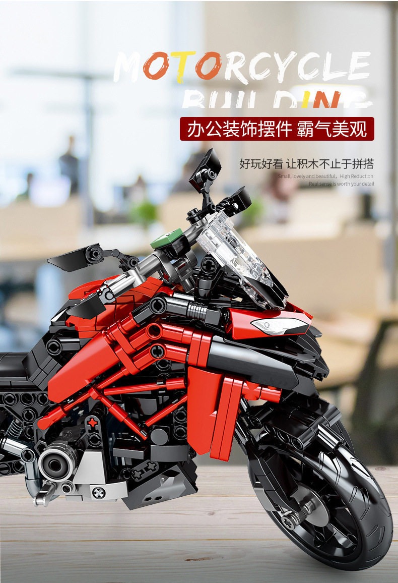 森宝科技系列杜卡迪越野摩托车赛车拼装积木玩具701604
