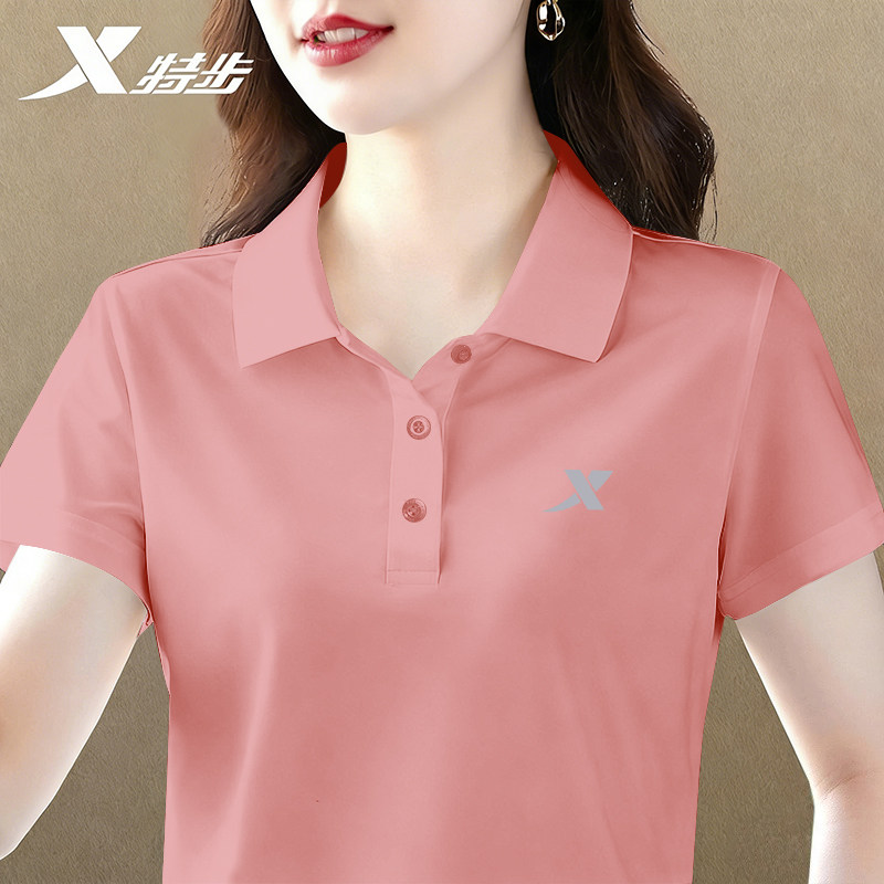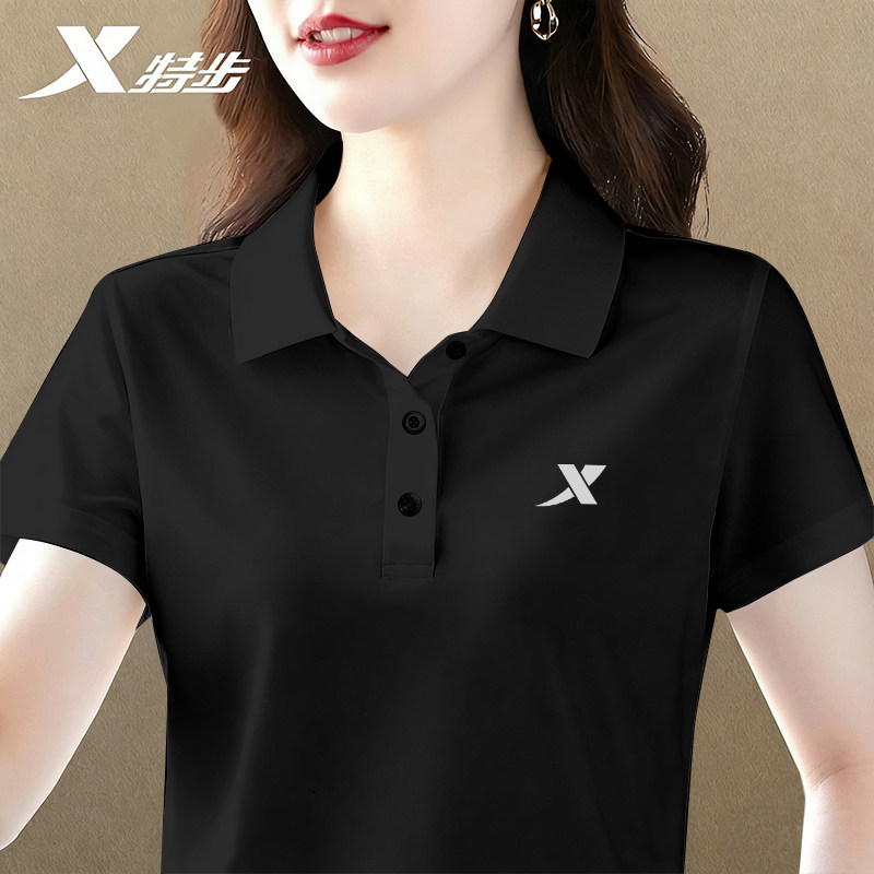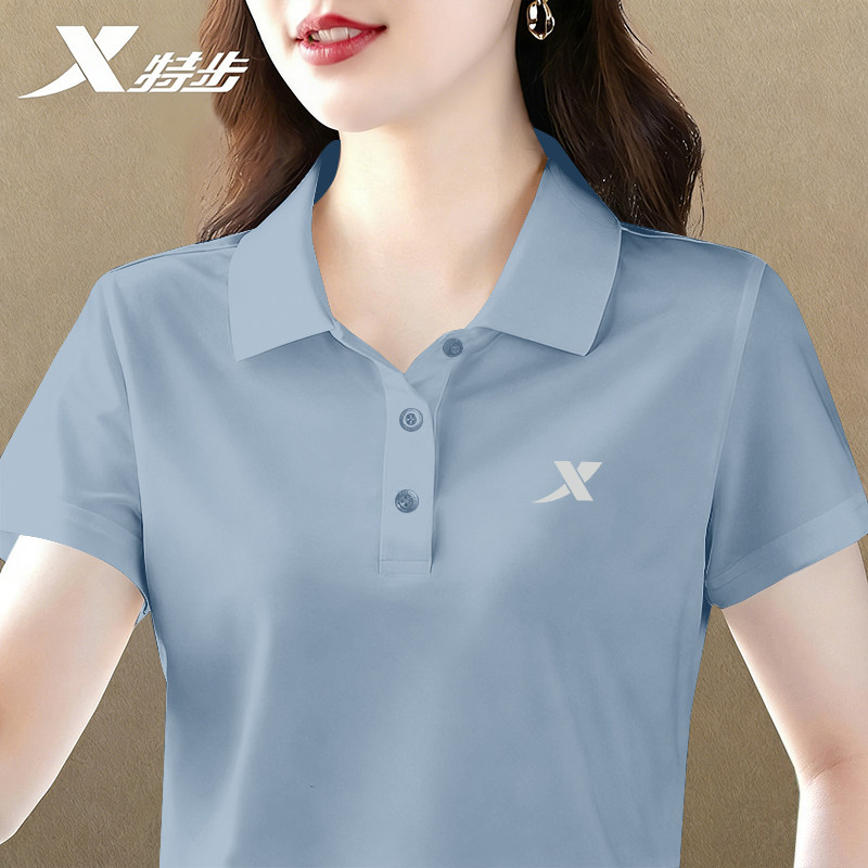 特步Polo衫女夏季透气冰丝速干短袖t恤女士翻领正肩宽松半袖女装