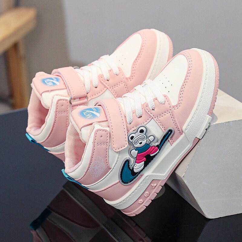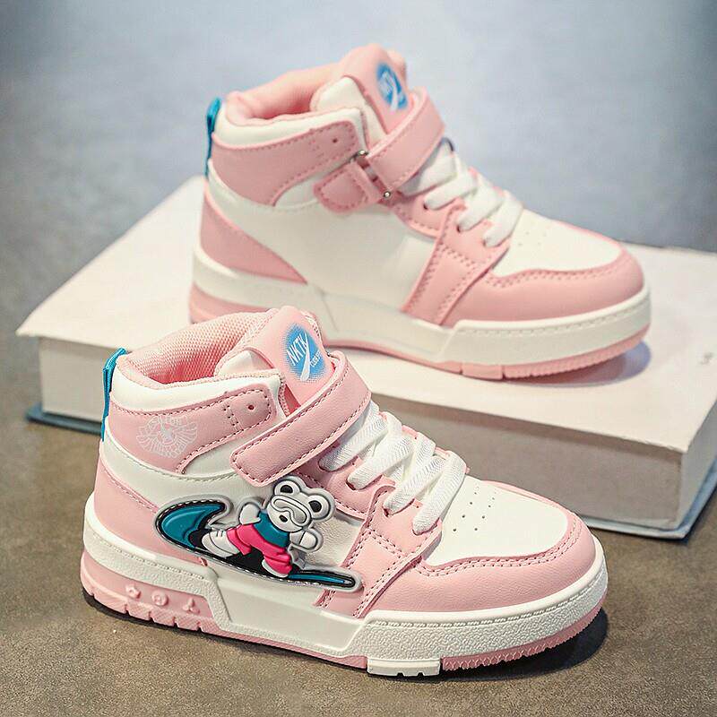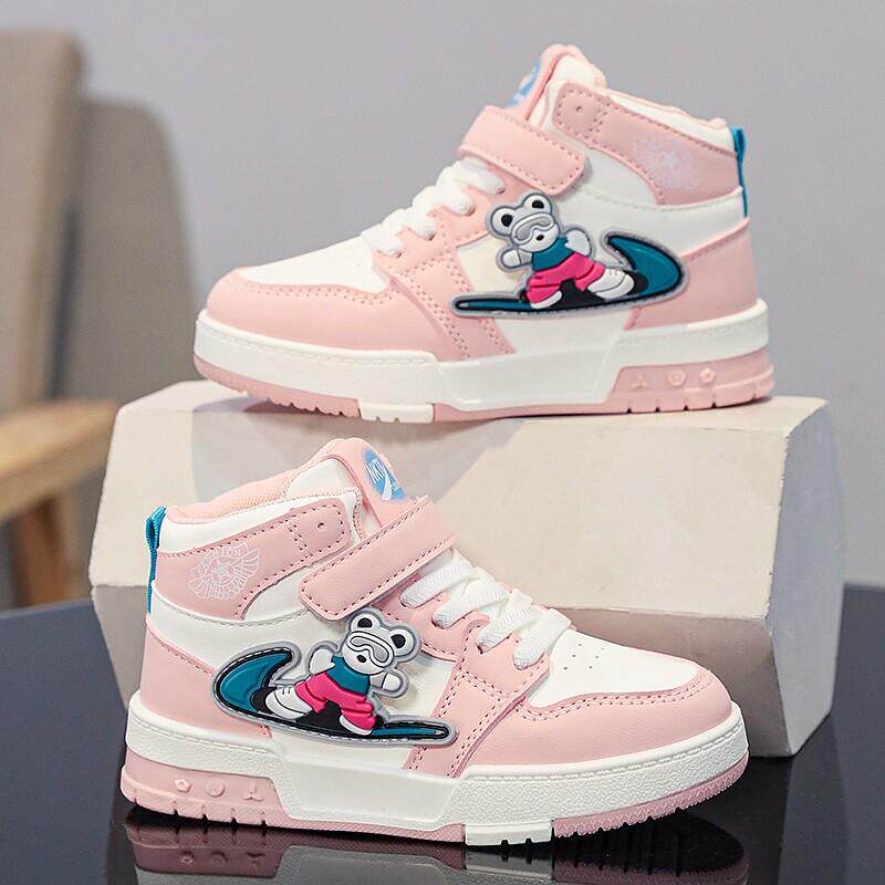 女童鞋子春款2025新款皮面防水儿童运动鞋中大童炸街女孩高筒板鞋