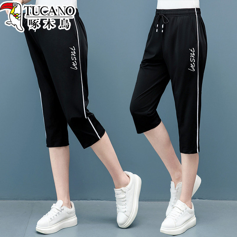 啄木鸟薄款运动卫裤女款2026新款夏季休闲七分裤冰感速干高腰中裤