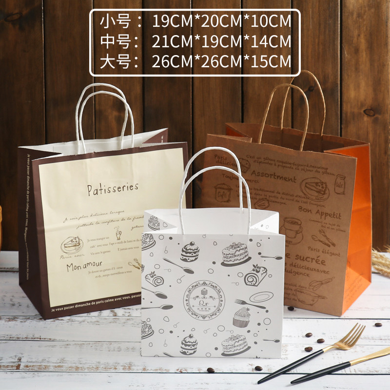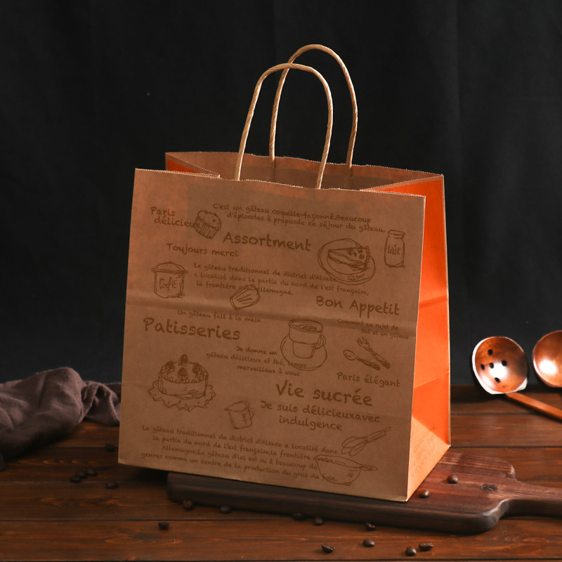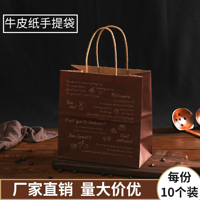 牛皮纸袋烘焙食品蛋糕甜品打包外卖手提袋烘培礼品包装袋定制logo