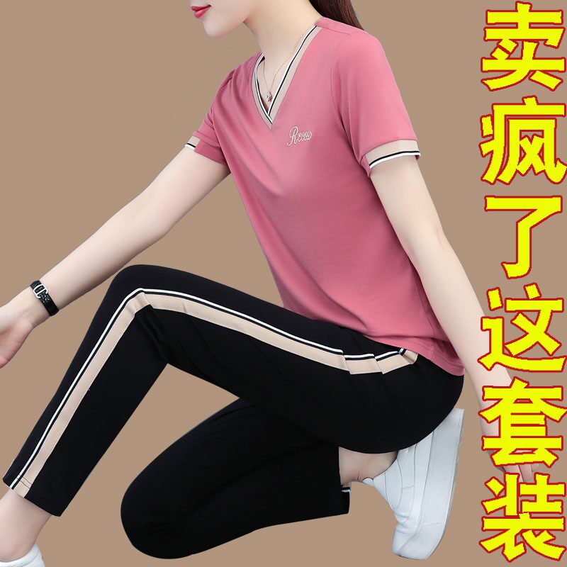小个子运动套装夏季2026年新款时尚妈妈跳舞女休闲服两件套0408x