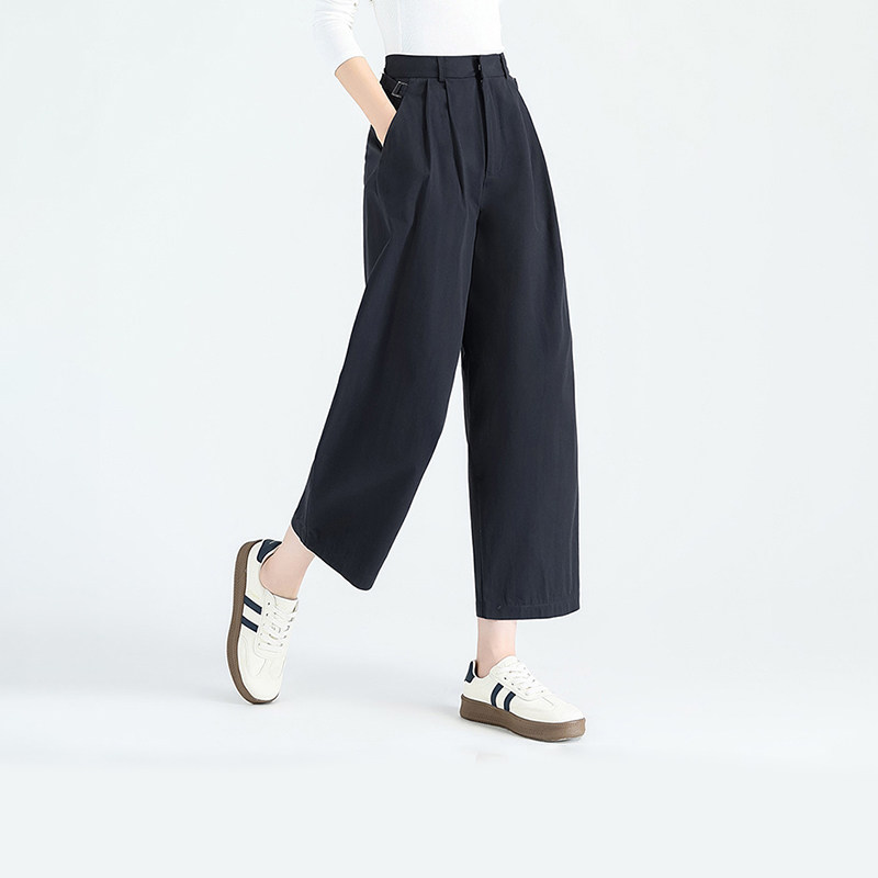 热风女士纯棉亲肤小个子裤子春秋女款百搭气质通勤八分萝卜哈伦裤