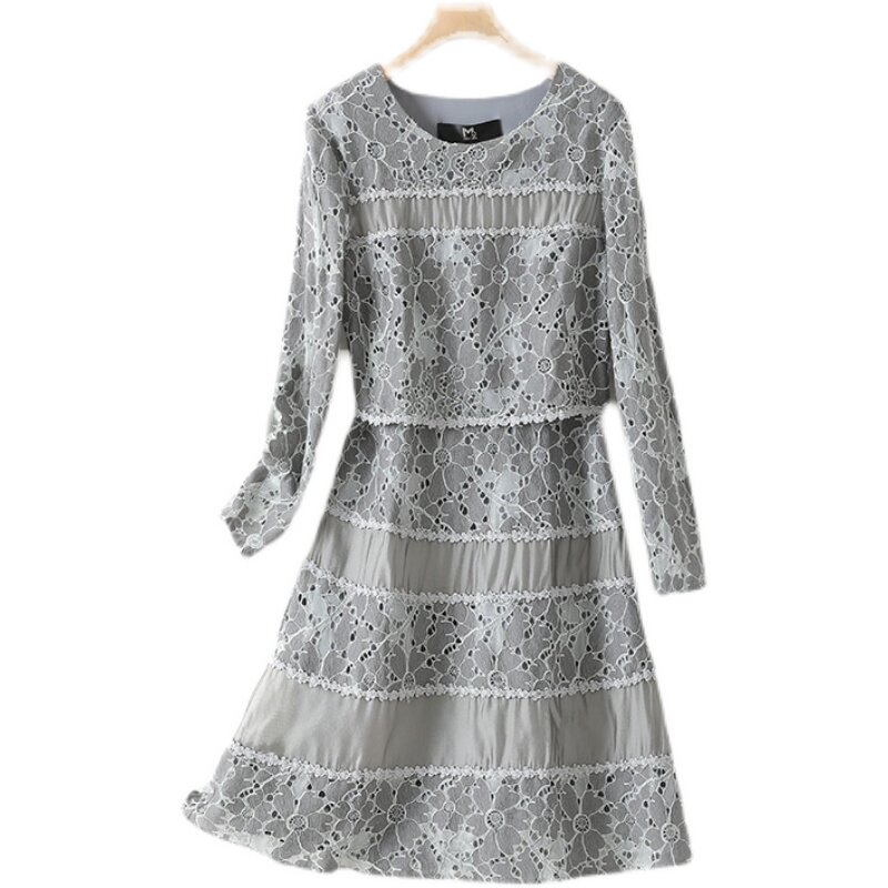M2女装品牌折扣针织连衣裙女春夏时尚洋气宽松大码长袖中长款裙子