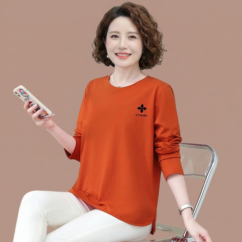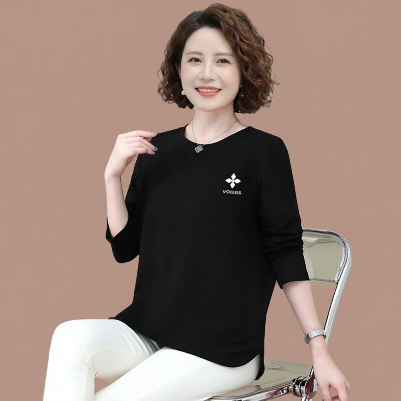 中年妈妈女士长袖T恤女款春款宽松显瘦春装上衣洋气内搭2026新款