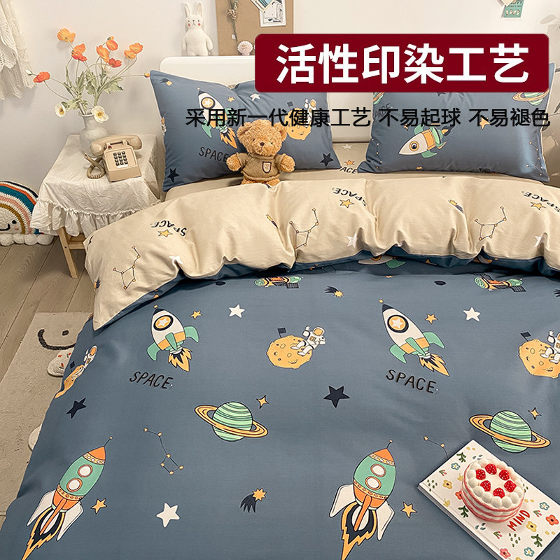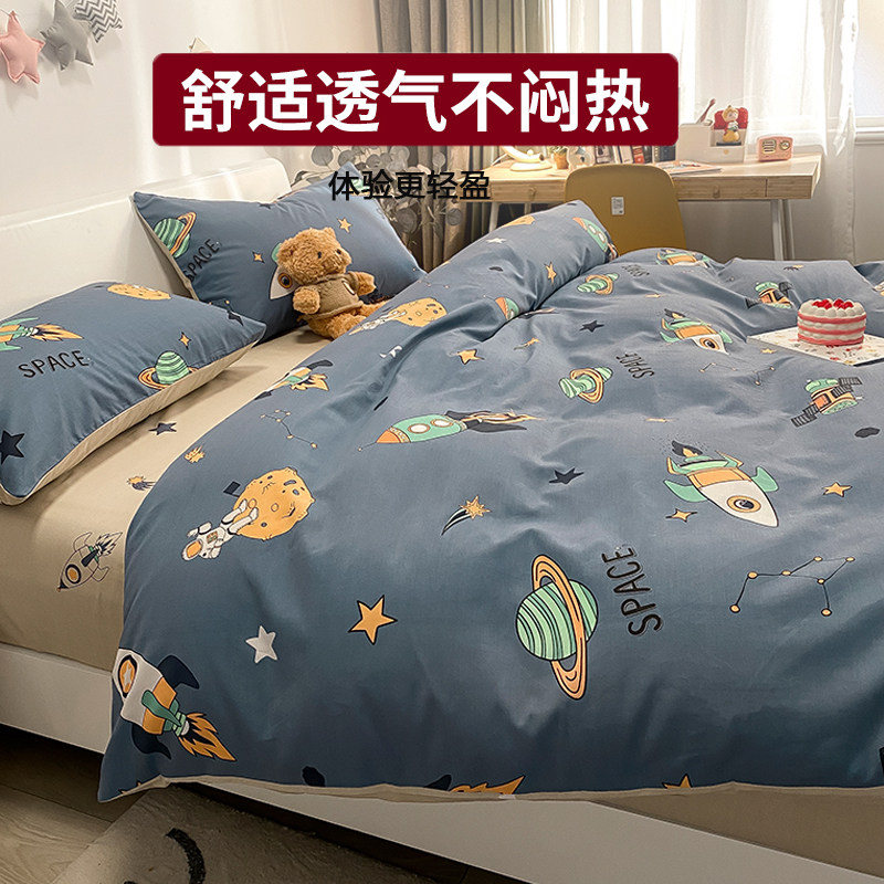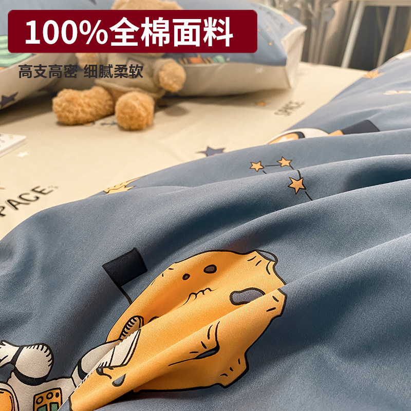 无印良品儿童四件套卡通全棉被套纯棉床上三件套男孩床上用品床笠