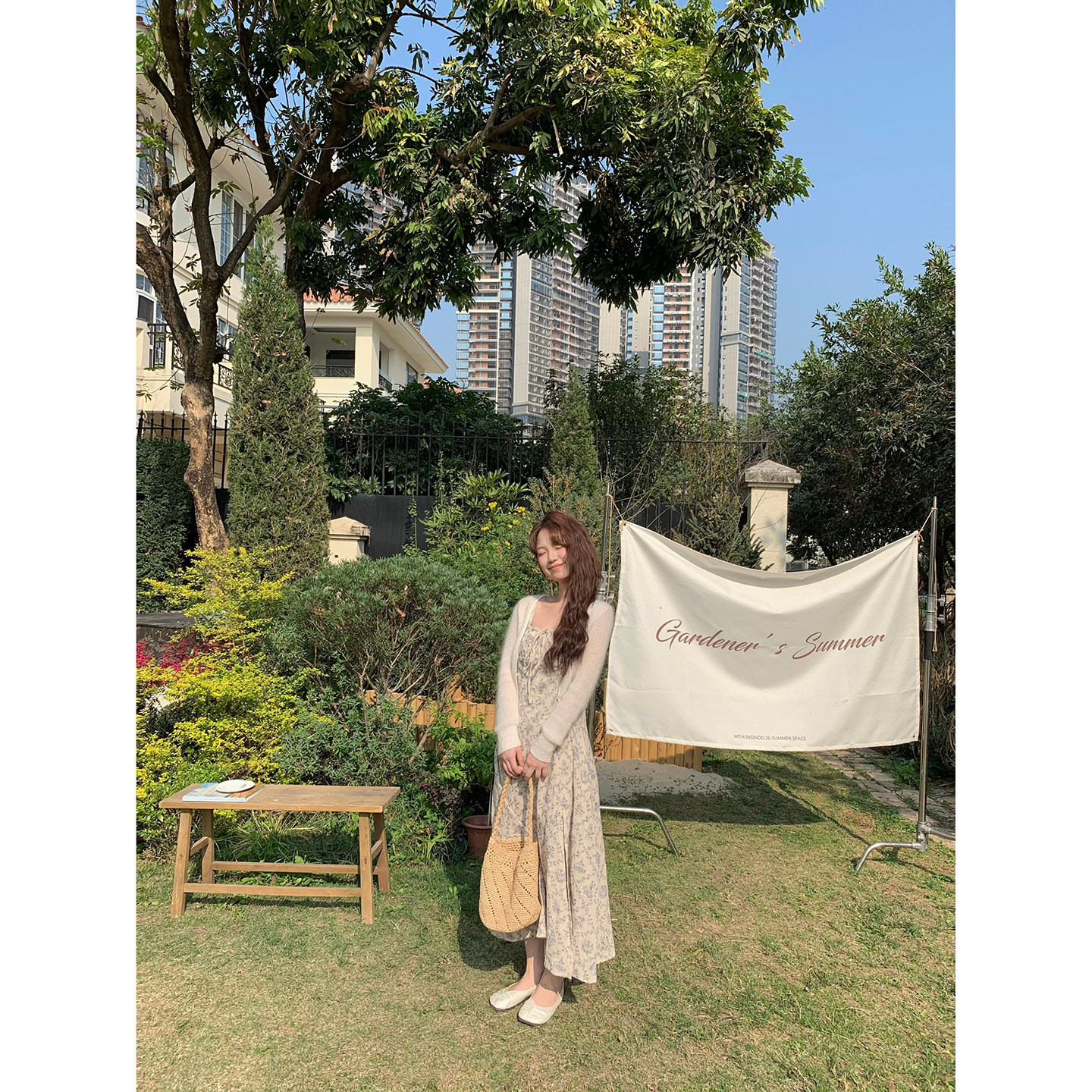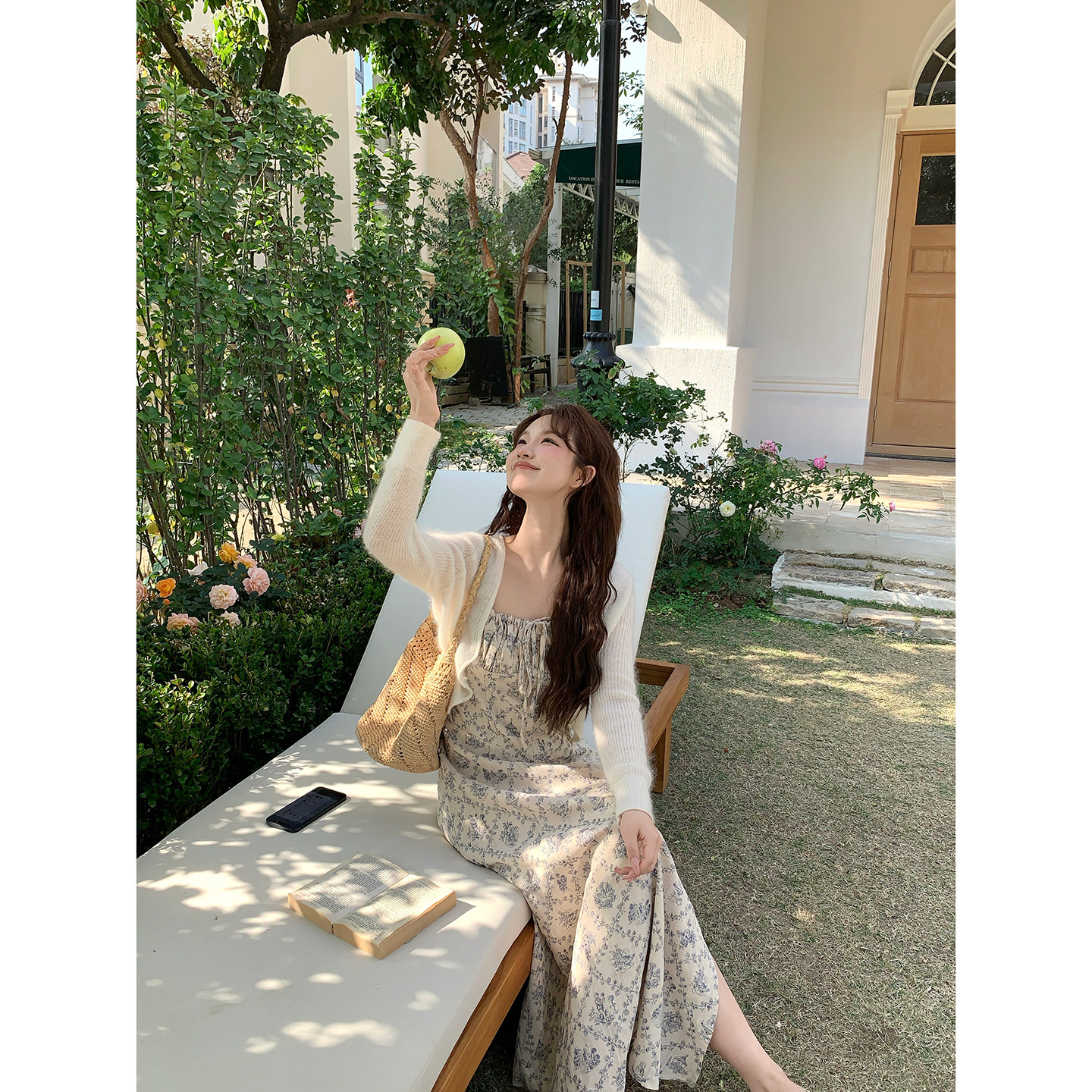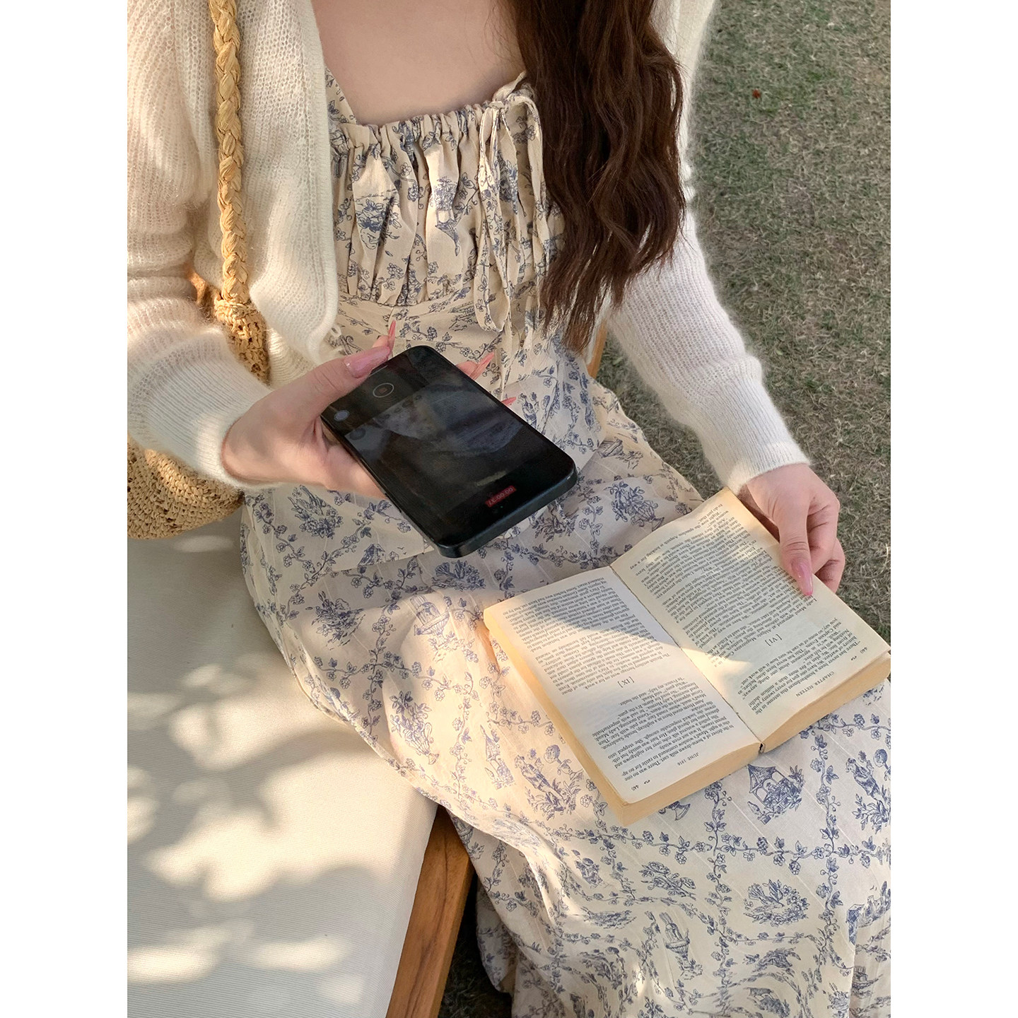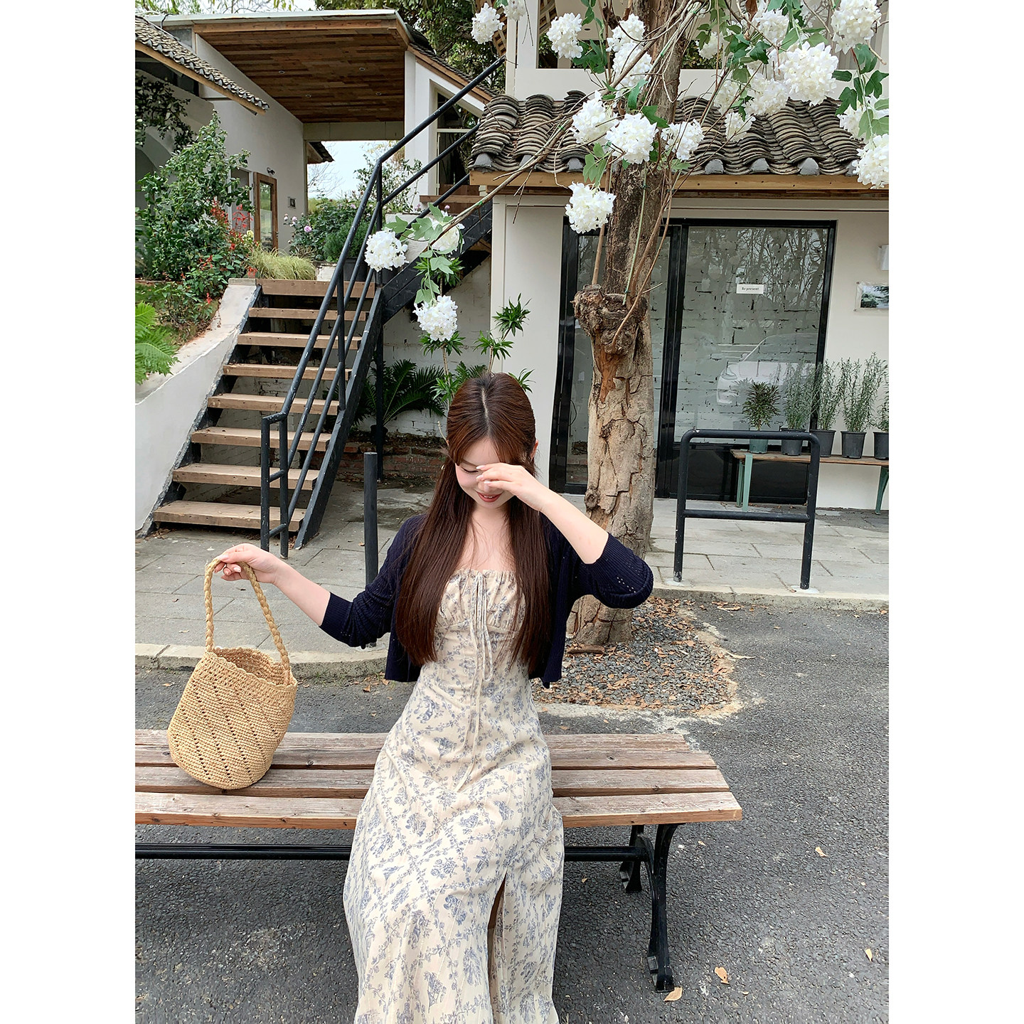 板栗西西【优柔青花】小个子温柔风A字碎花吊带连衣裙女气质长裙
