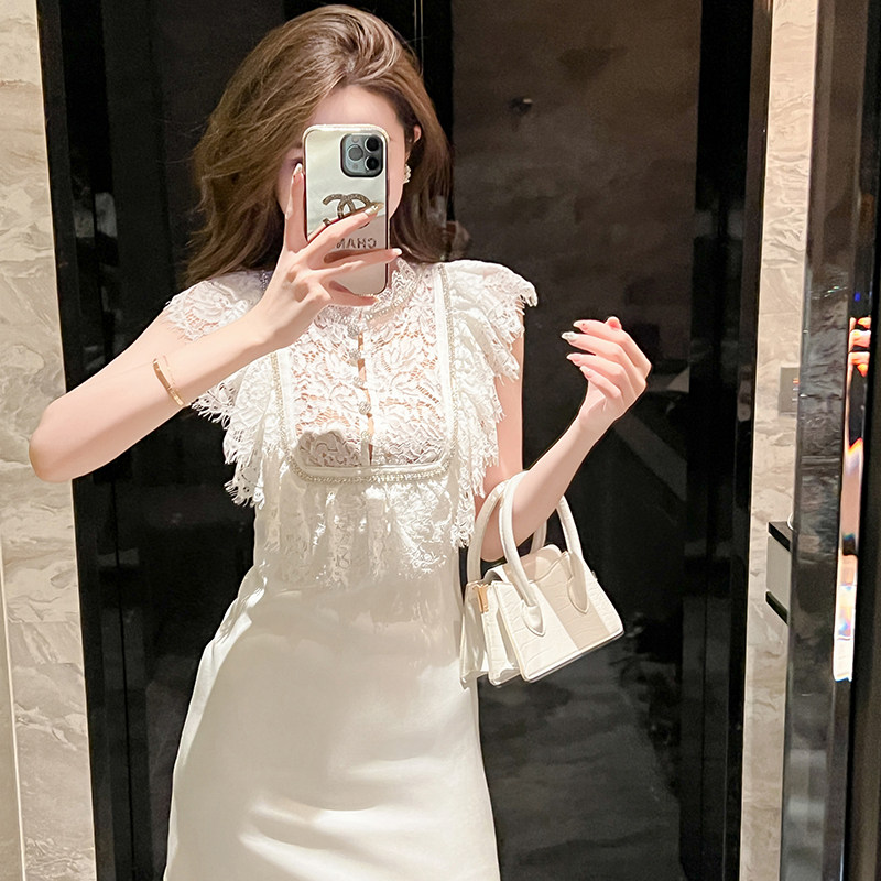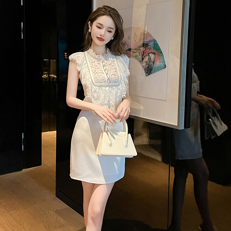 小个子白色连衣裙女高级感夏季无袖背心裙气质名媛短款修身包臀裙