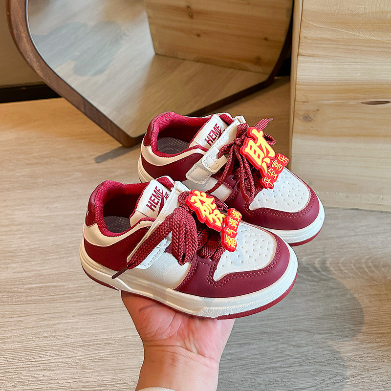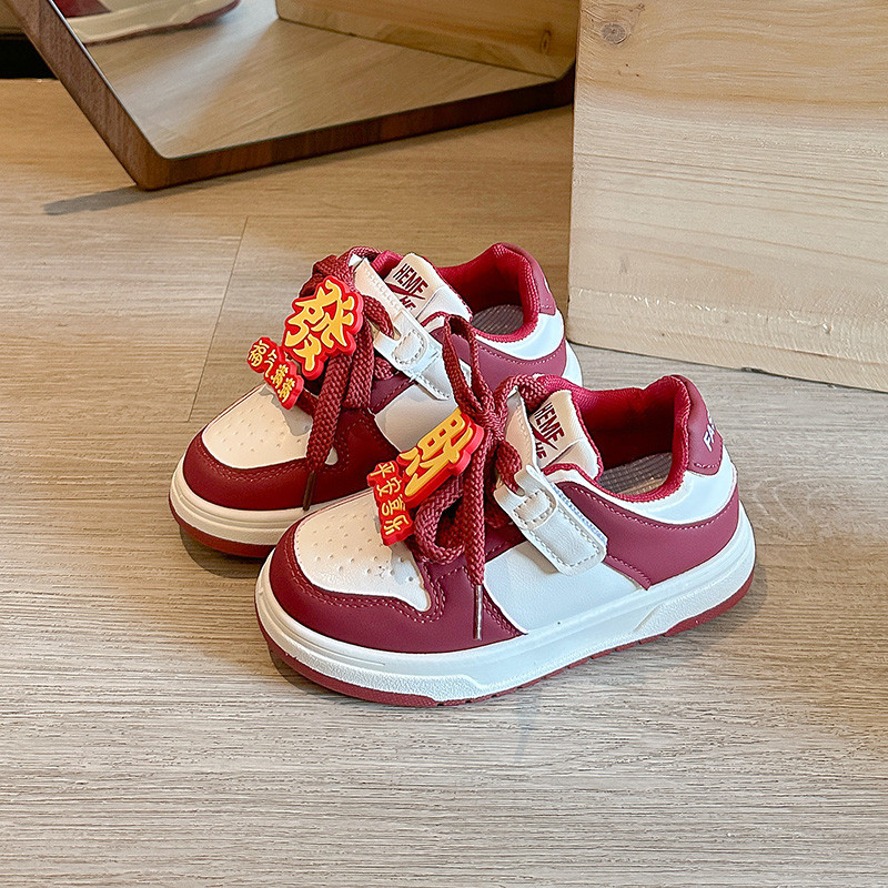 本命年儿童鞋子男童板鞋2025秋冬款皮面百搭运动鞋中大童红色板鞋
