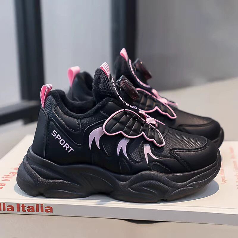 耐脏女童鞋子2026新款春季防滑女孩跑步老爹鞋黑色爆款儿童运动鞋