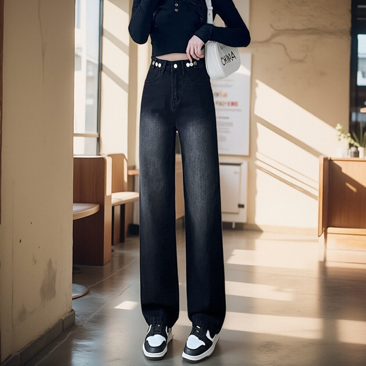2025年秋季新款牛仔裤女款高腰显瘦宰版阔腿裤渐变直筒裤拖地裤子