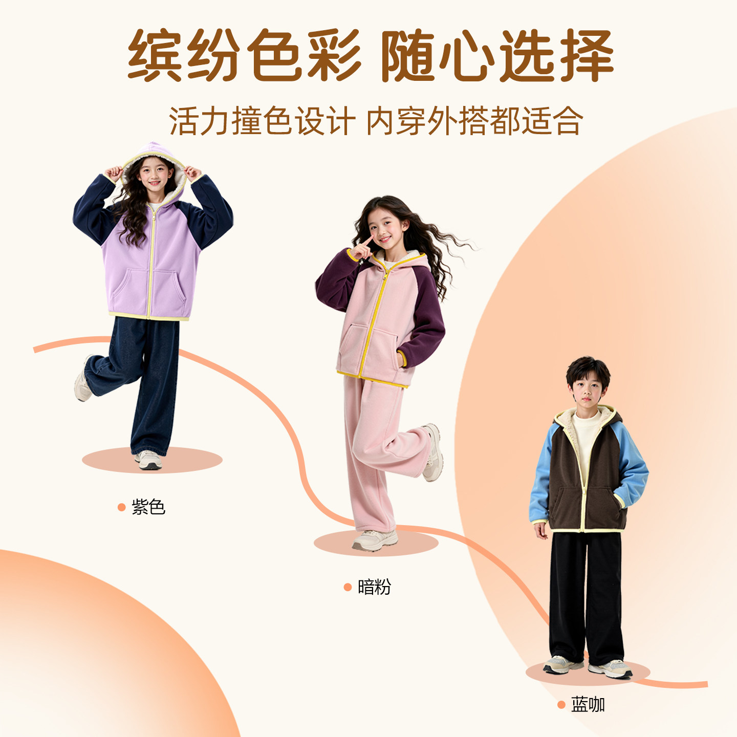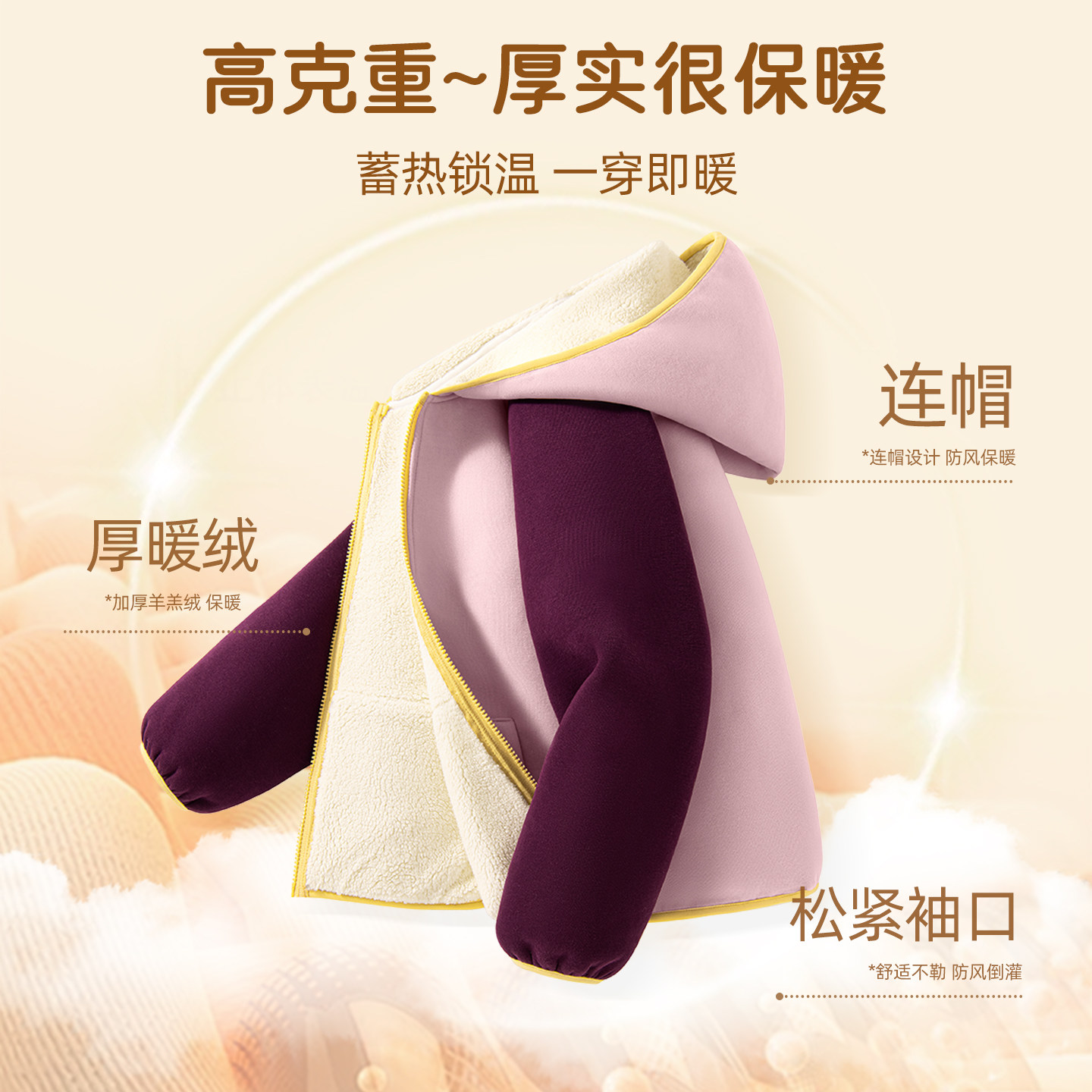 迪士尼女童加绒套装2026新款中学生紫色加厚连帽童装外套儿童冬装