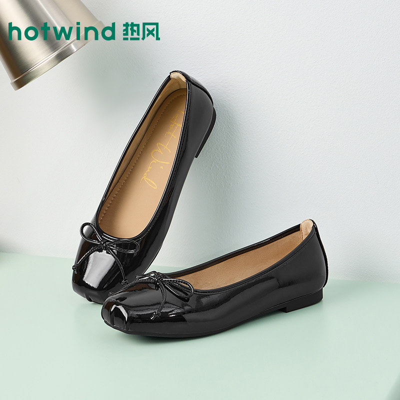 热风平底单鞋女2026年春季新款法式方头浅口单鞋蝴蝶结通勤女鞋子
