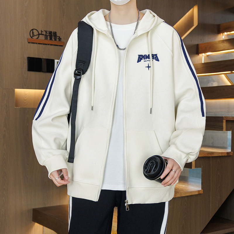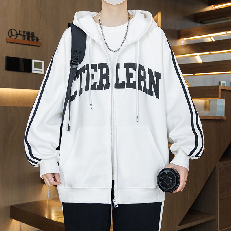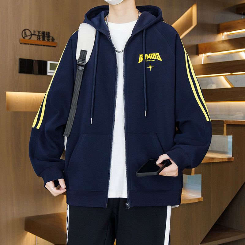 春秋装新款外套男孩初中学生帅气休闲开衫夹克青少年大童连帽卫衣