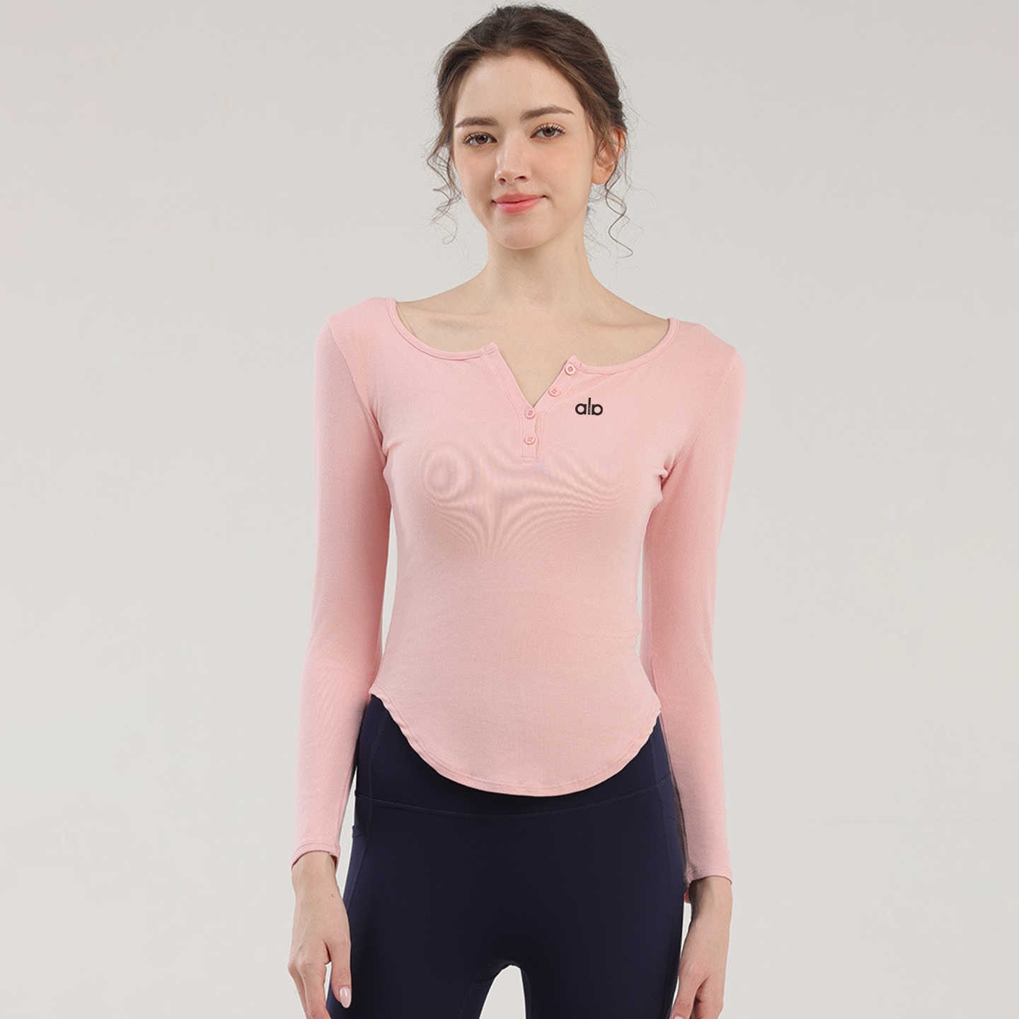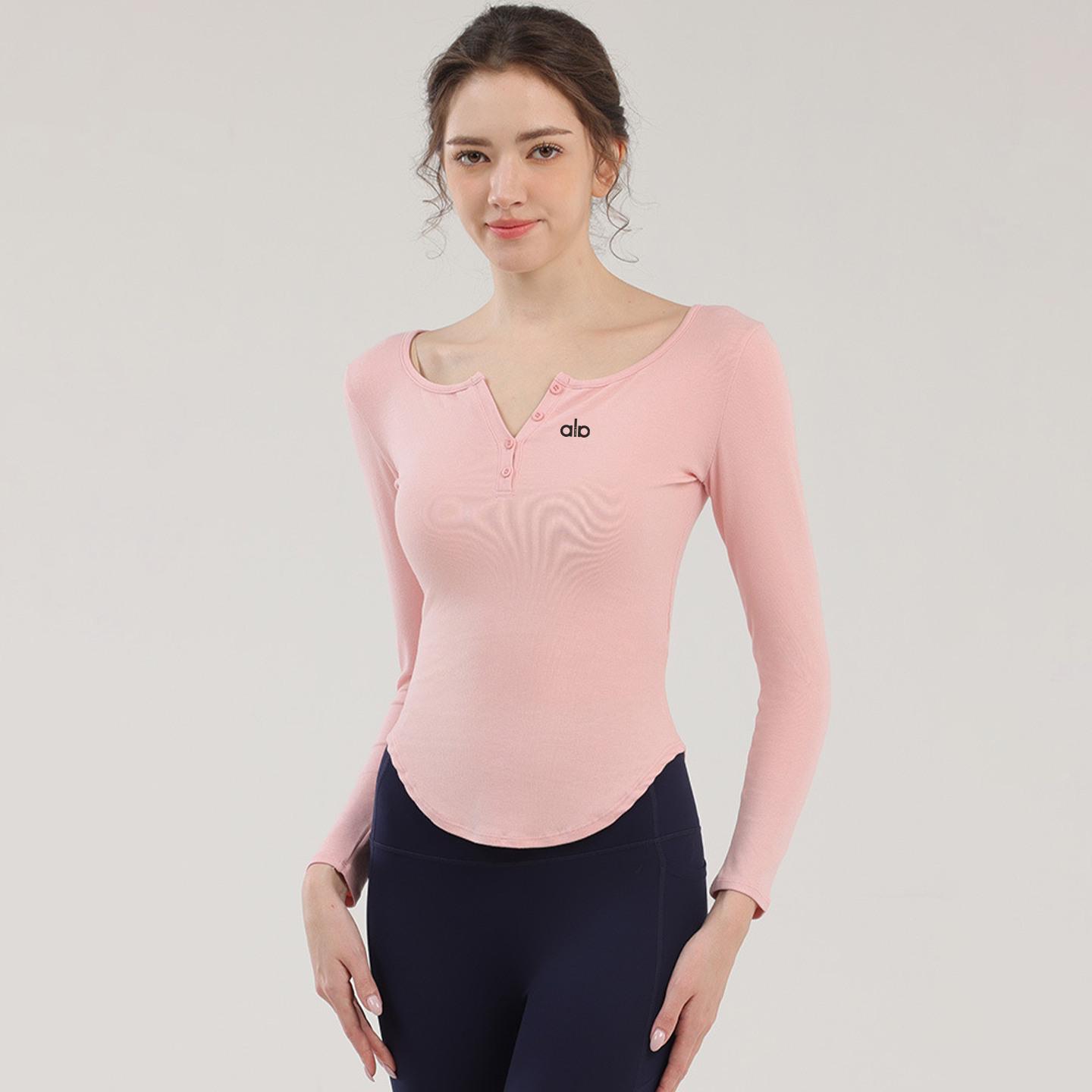 ALOACTIVE瑜伽服女柔软舒适修身V领打底衫健身跑步训练运动上衣