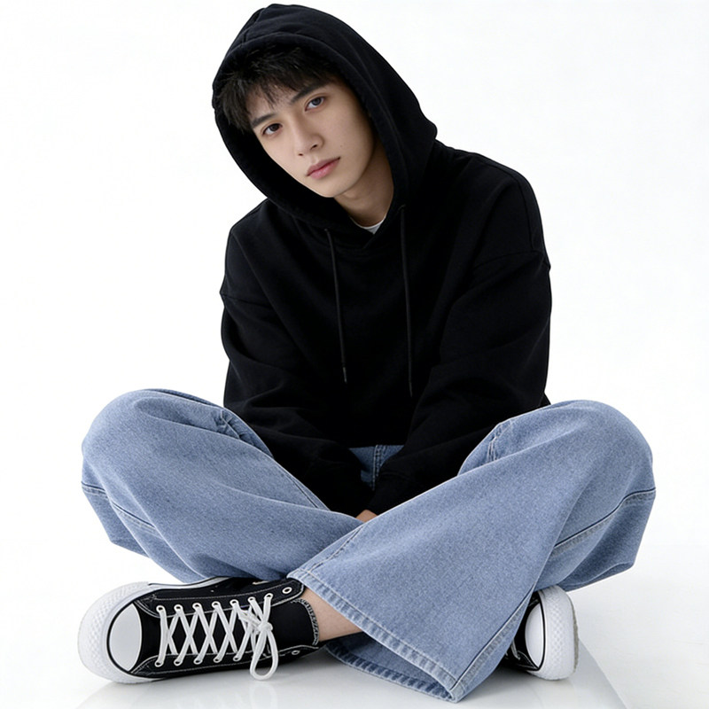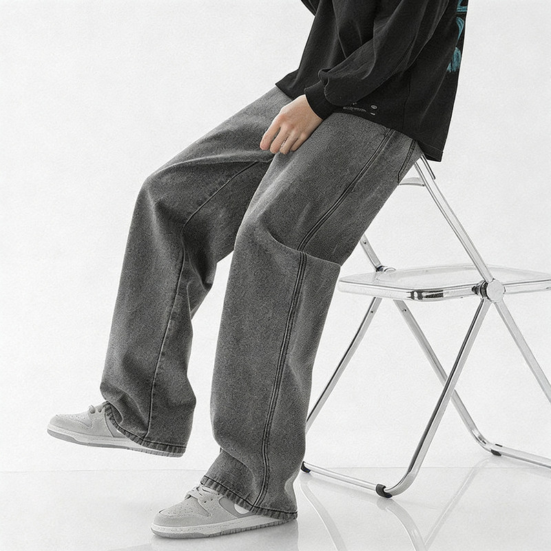 ESUNQ 牛仔裤2026新款男潮酷帅气青少年阔腿水洗男士宽松直筒裤子