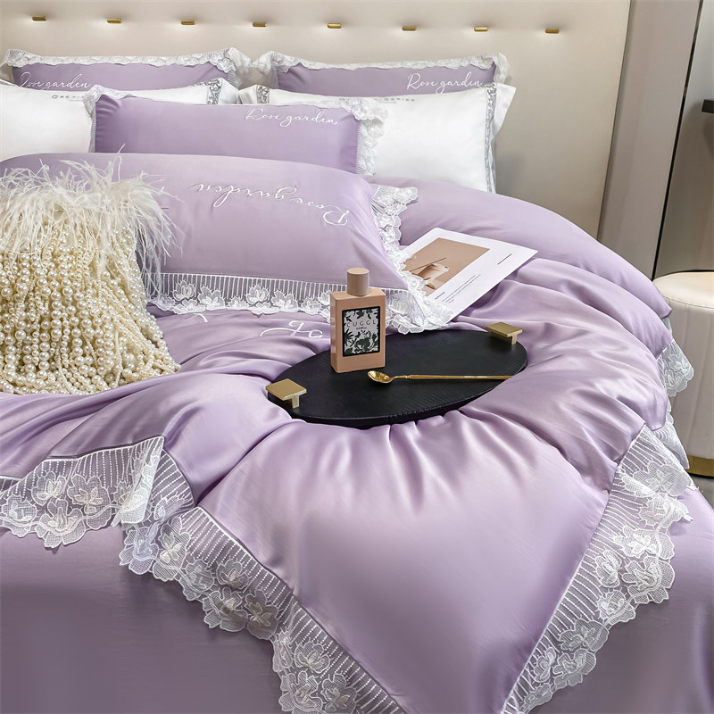 仙女紫色天丝床上四件套冰丝被套裸睡夏季小清新高级感公主风床品