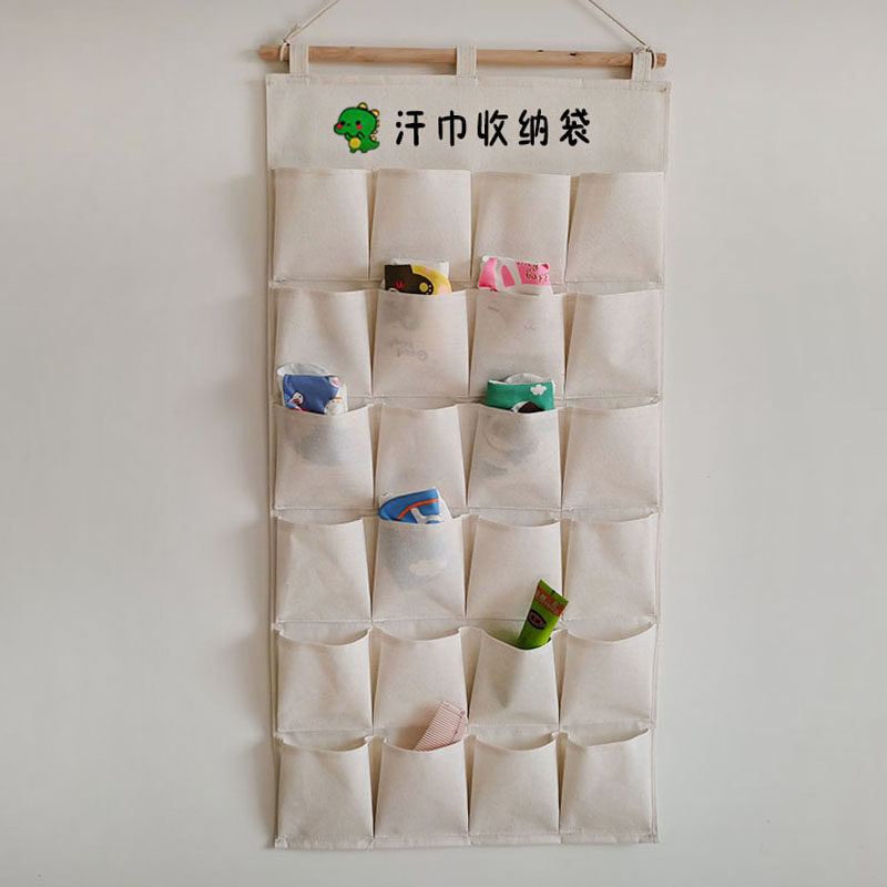 幼儿园吸汗巾收纳袋帆布可水洗挂式汗巾袋教室壁挂梳子储物袋口罩