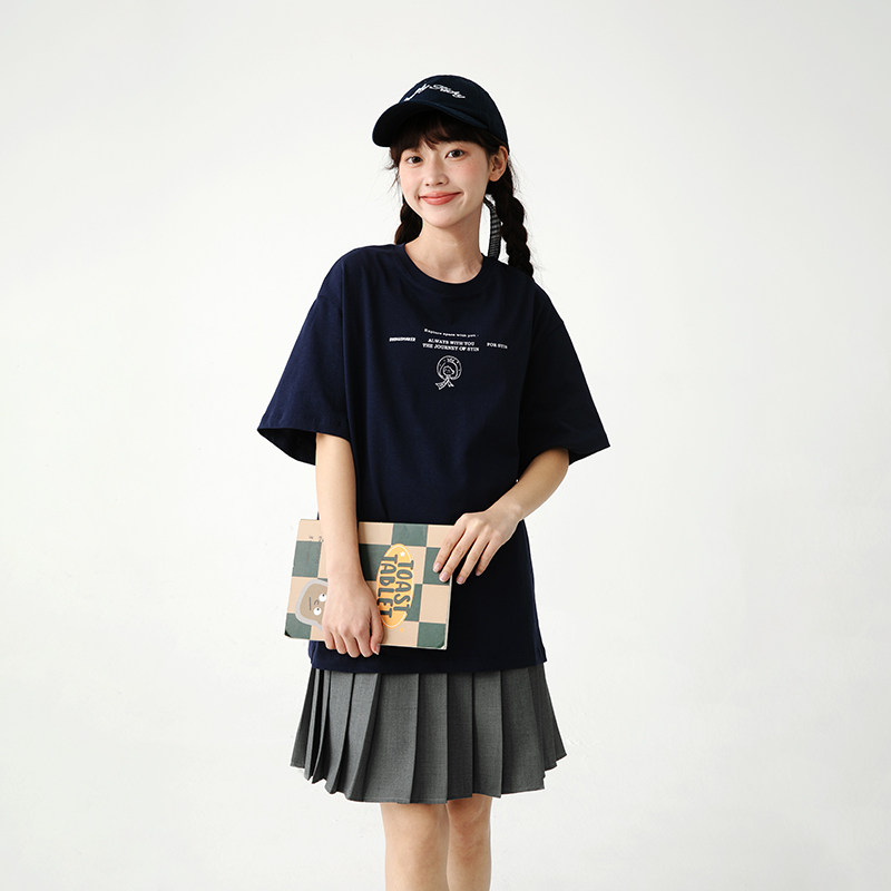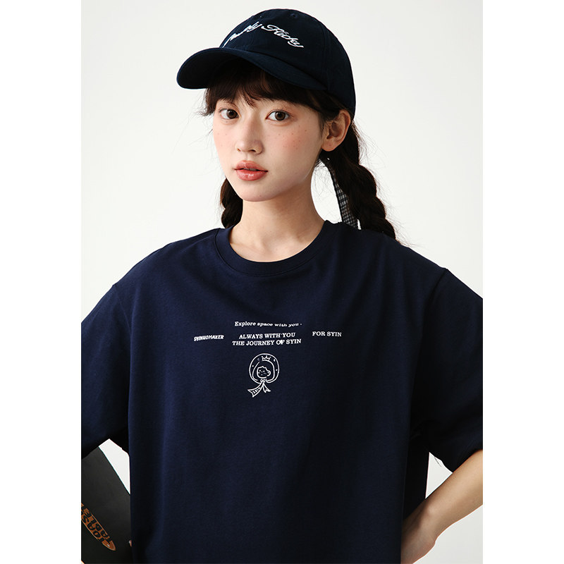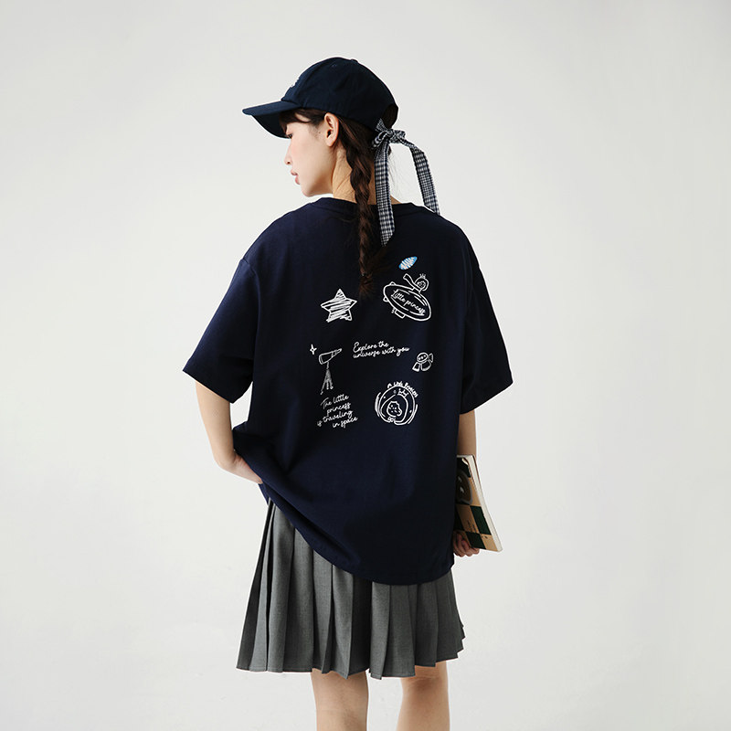 诺诺公主S1N 初中生宽松t恤夏字母印花短袖圆领涂鸦时尚上衣女潮