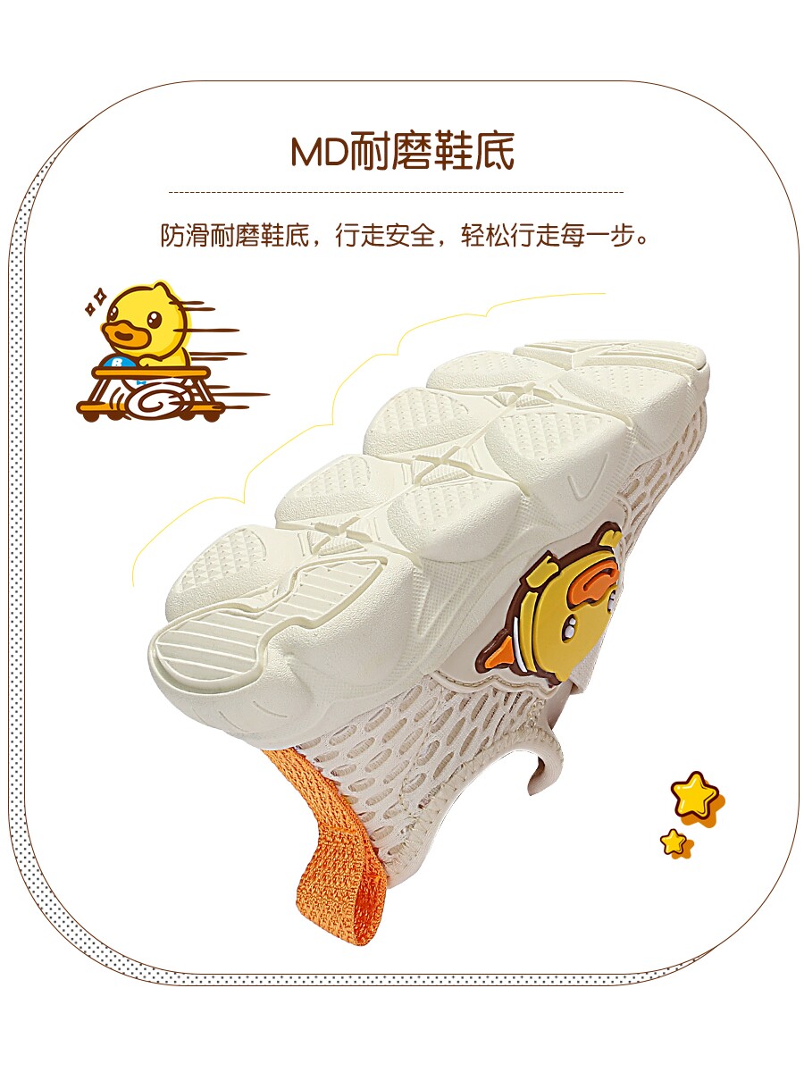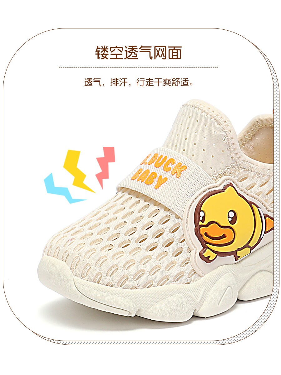 B.Duck小黄鸭童鞋男童运动鞋夏秋儿童镂空网鞋透气网面女童大网眼