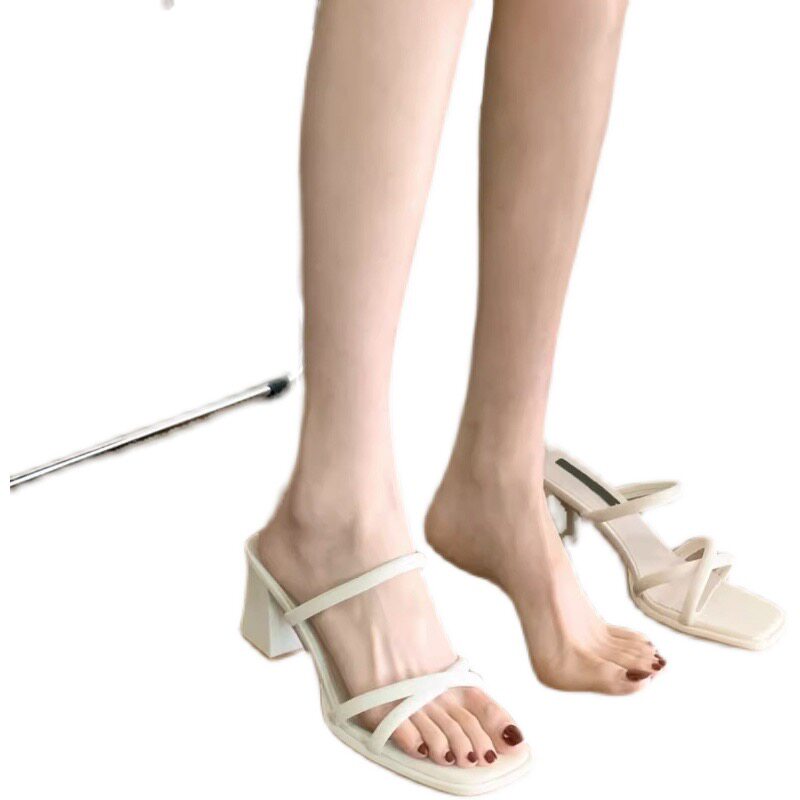 拖鞋女夏季外穿2026新款夏季小众高级感百搭配裙子粗跟高跟凉拖