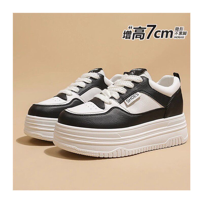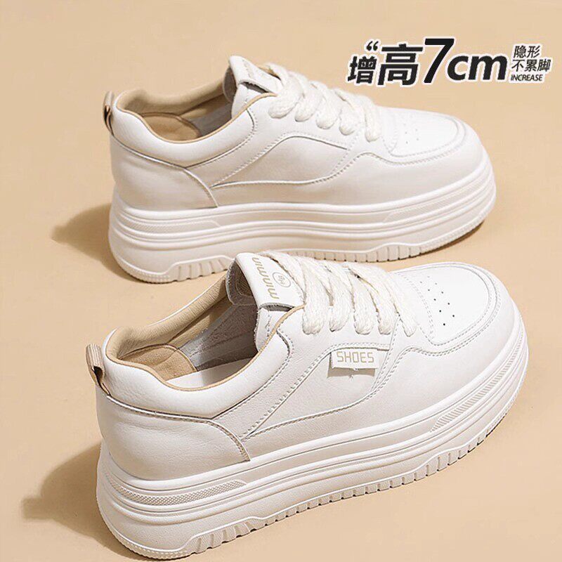 真皮小白鞋女内增高7CM小个子2026夏季新款百搭厚底板鞋休闲运动