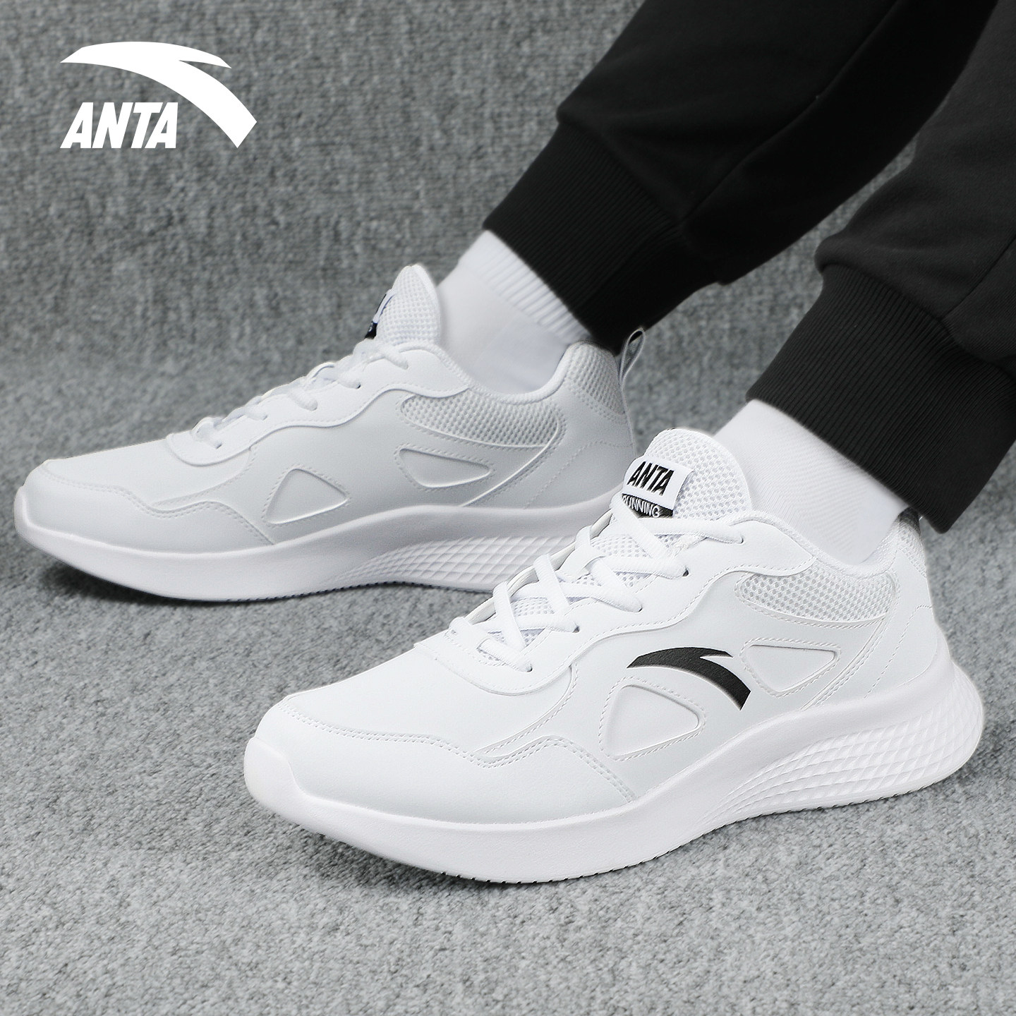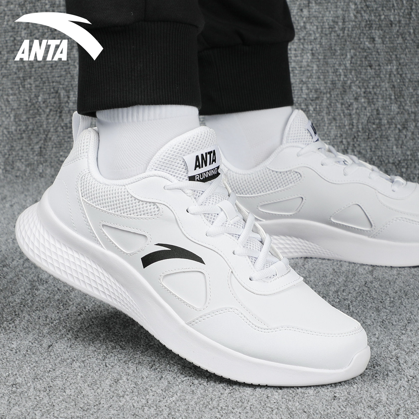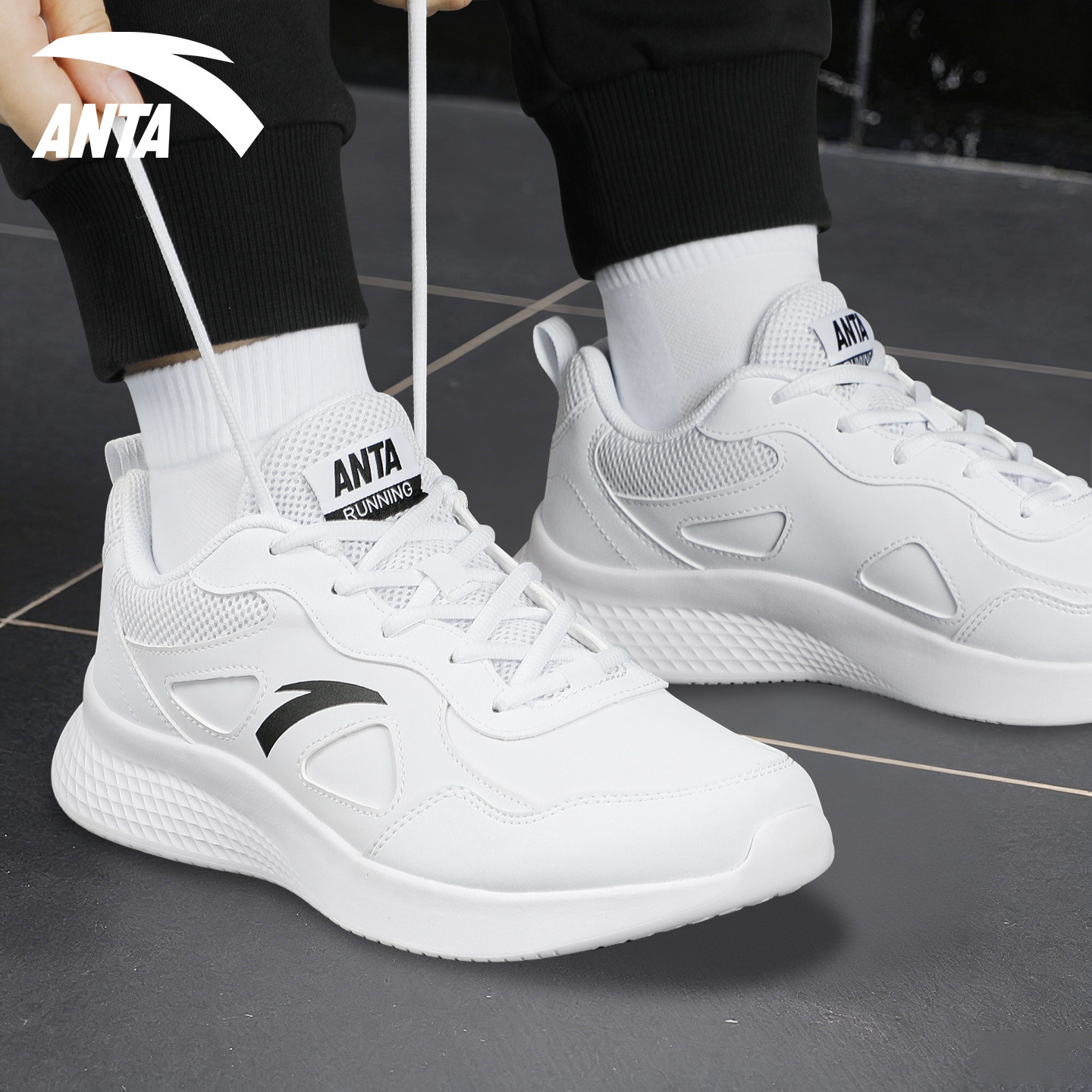 安踏男鞋跑步鞋男款2026春季新款皮面舒适软底学生跑步白色运动鞋