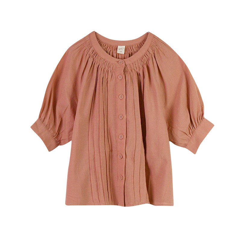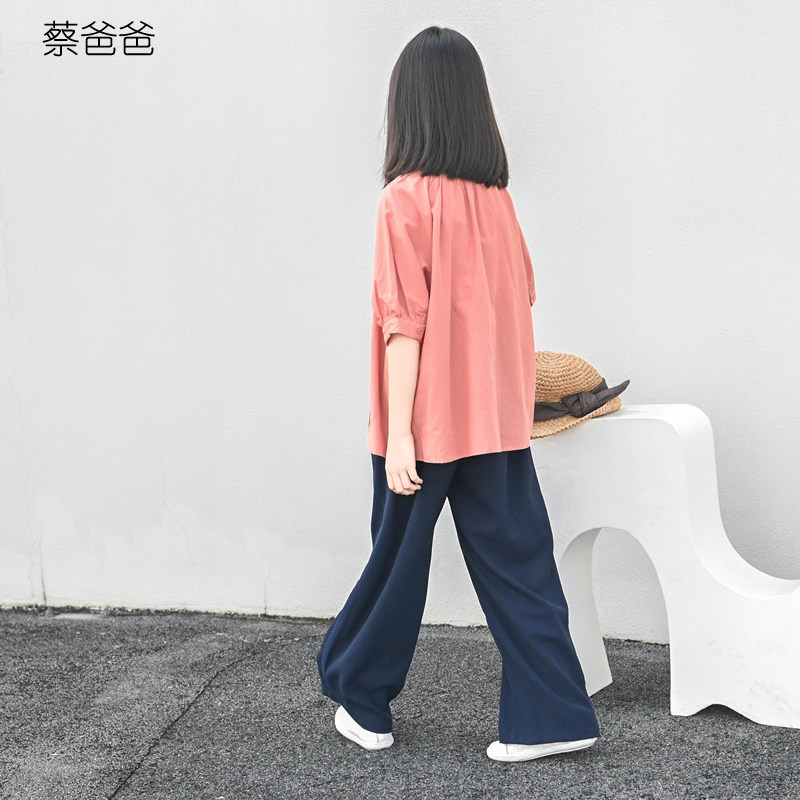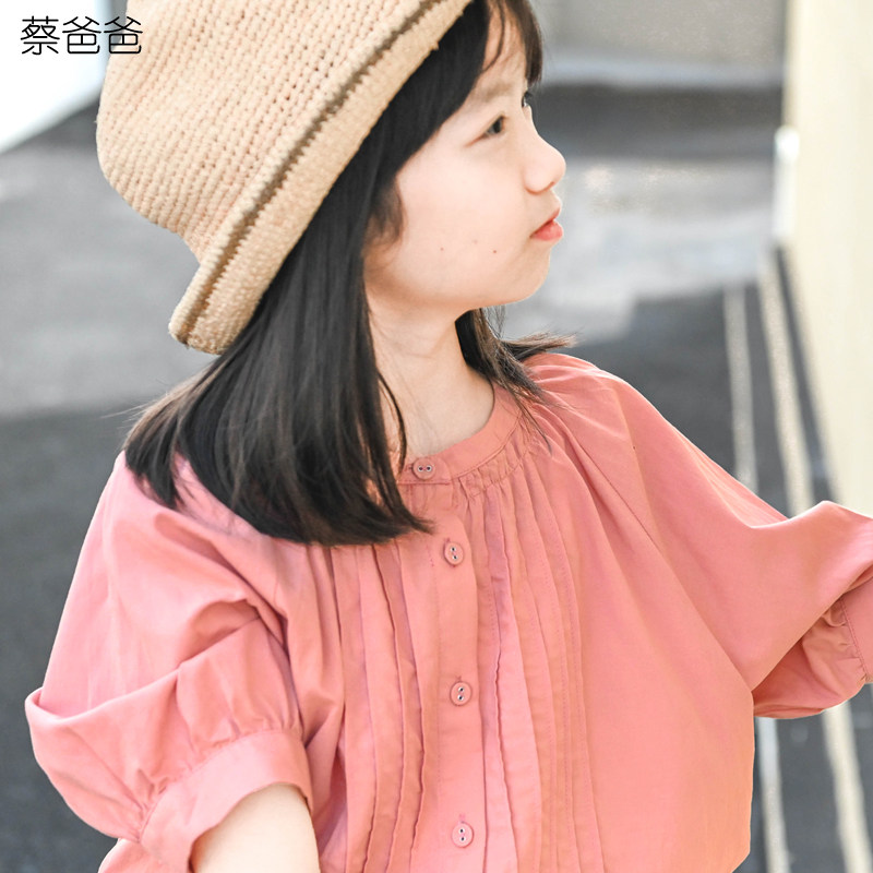 蔡爸爸女童装 独特漂亮亲子夏装 粉红色短袖上衣 薄款衬衫390+177
