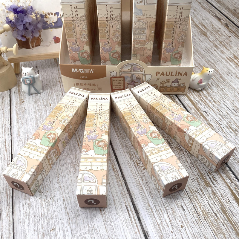 晨光宝琳娜盲盒按动中性笔高颜值女生款黑色学生用0.38按压签字水笔魔法甜品屋可爱超萌ins风少女心卡通文具