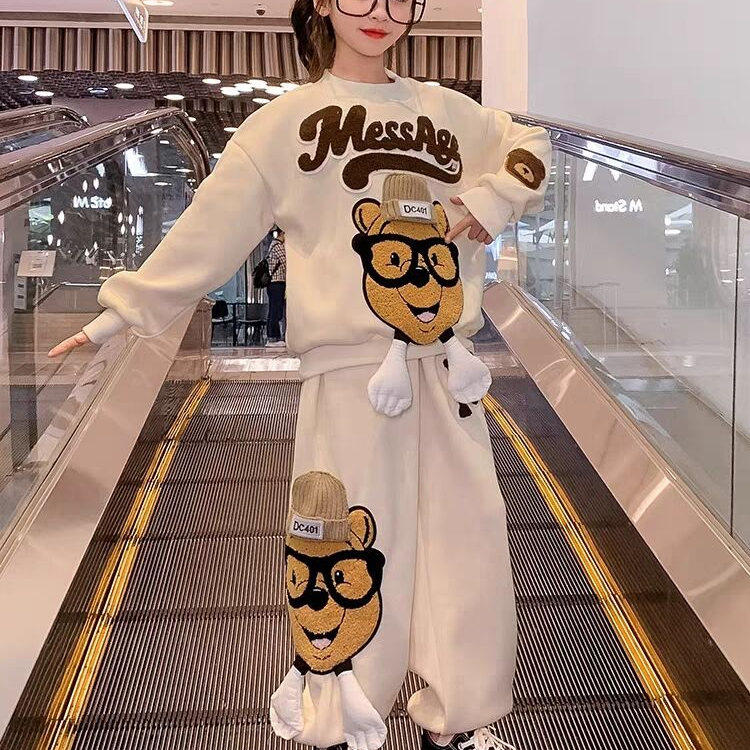 女童春装套装2026新款洋气儿童运动网红中大童春秋加绒卫衣两件套