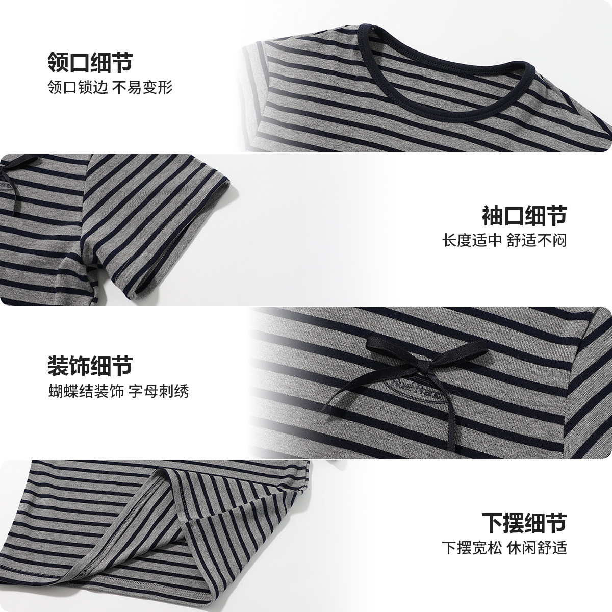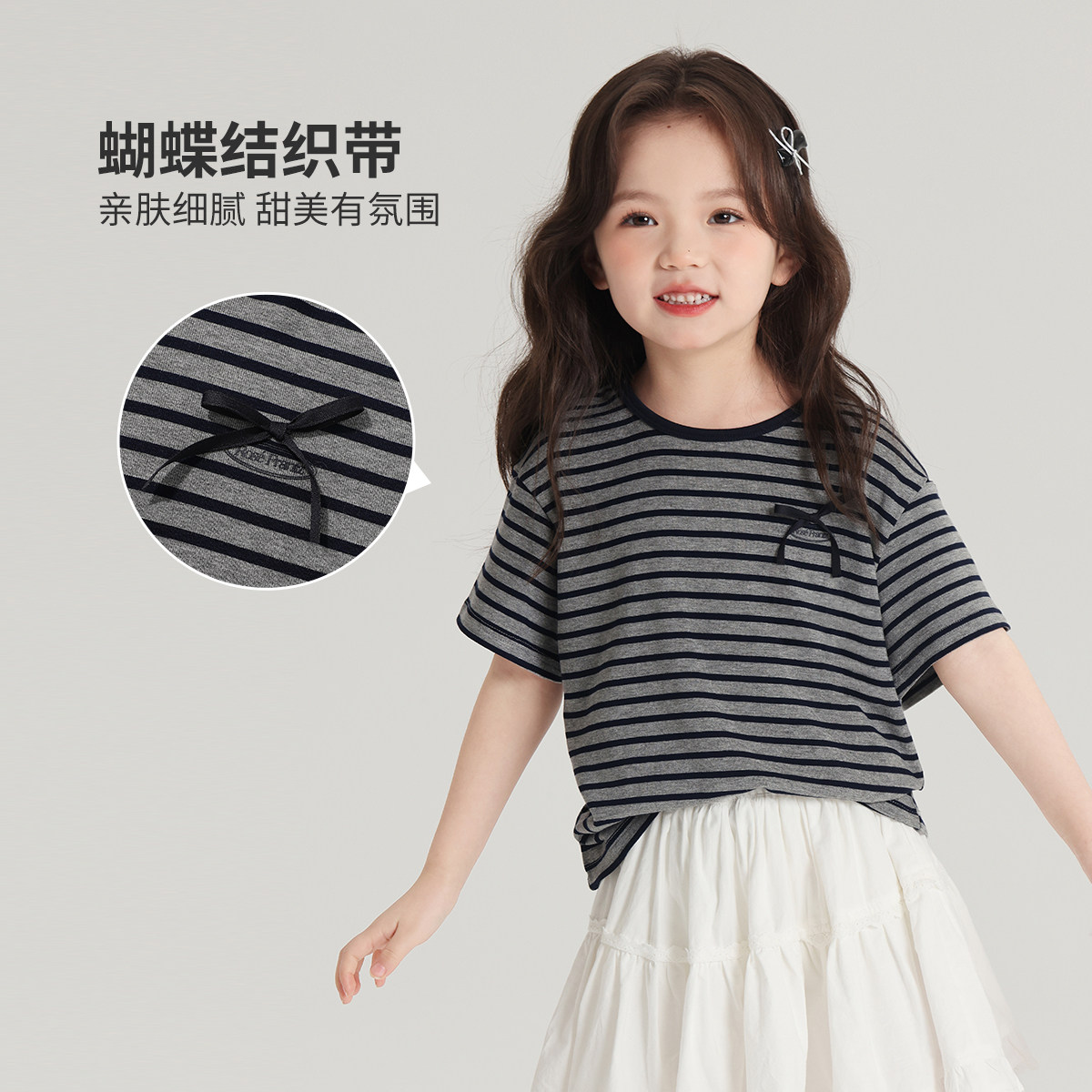 布丁哈鲁童装春装女童洋气上衣2026春秋新款儿童百搭条纹短袖T恤