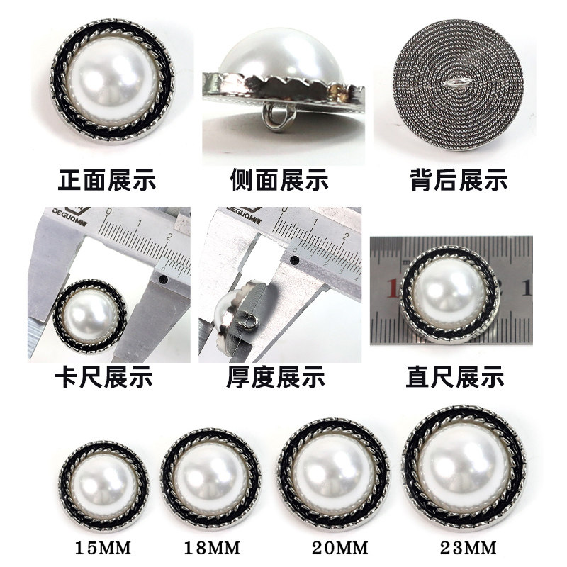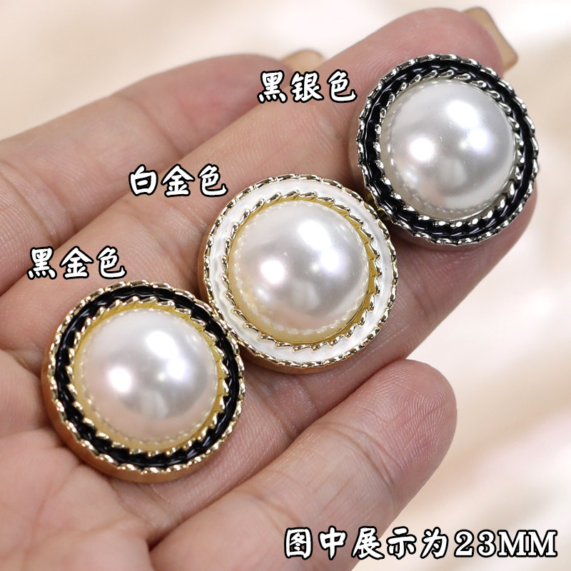 高档黑白珍珠金属纽扣百搭大衣衬衫扣子女毛衣开衫外套装饰扣配件